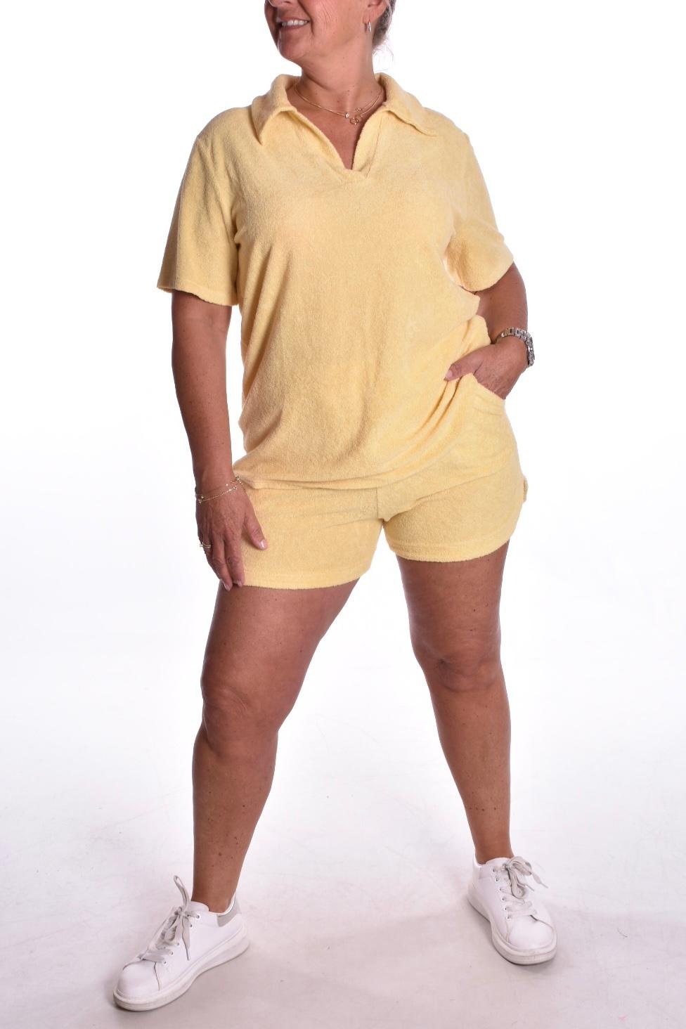 Super comfy! 2 delige set van een prachtige luxe katoenen badstof. De top heeft een polo kraagje. Het short heeft steekzakken. Er zit veel stretch in.