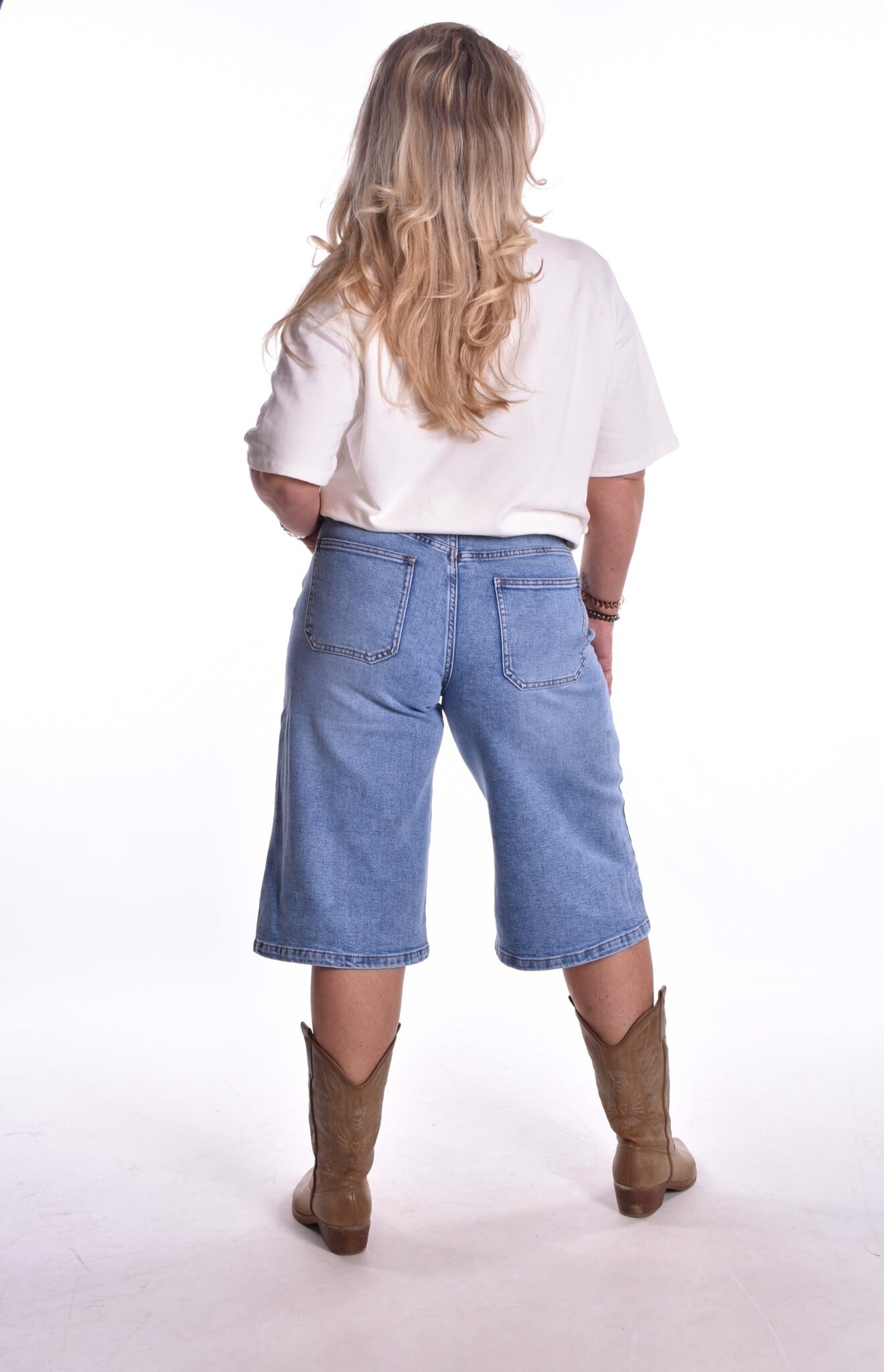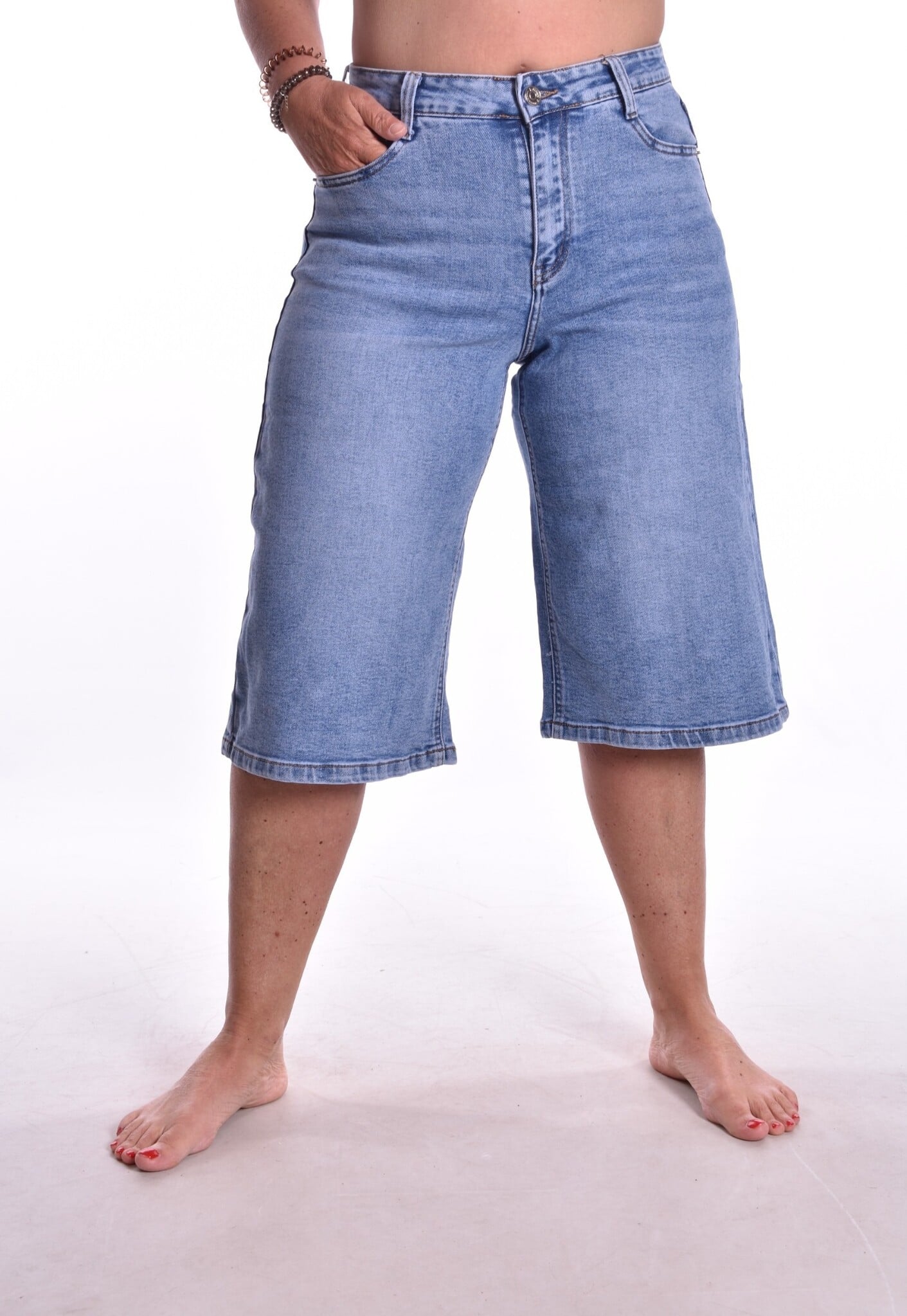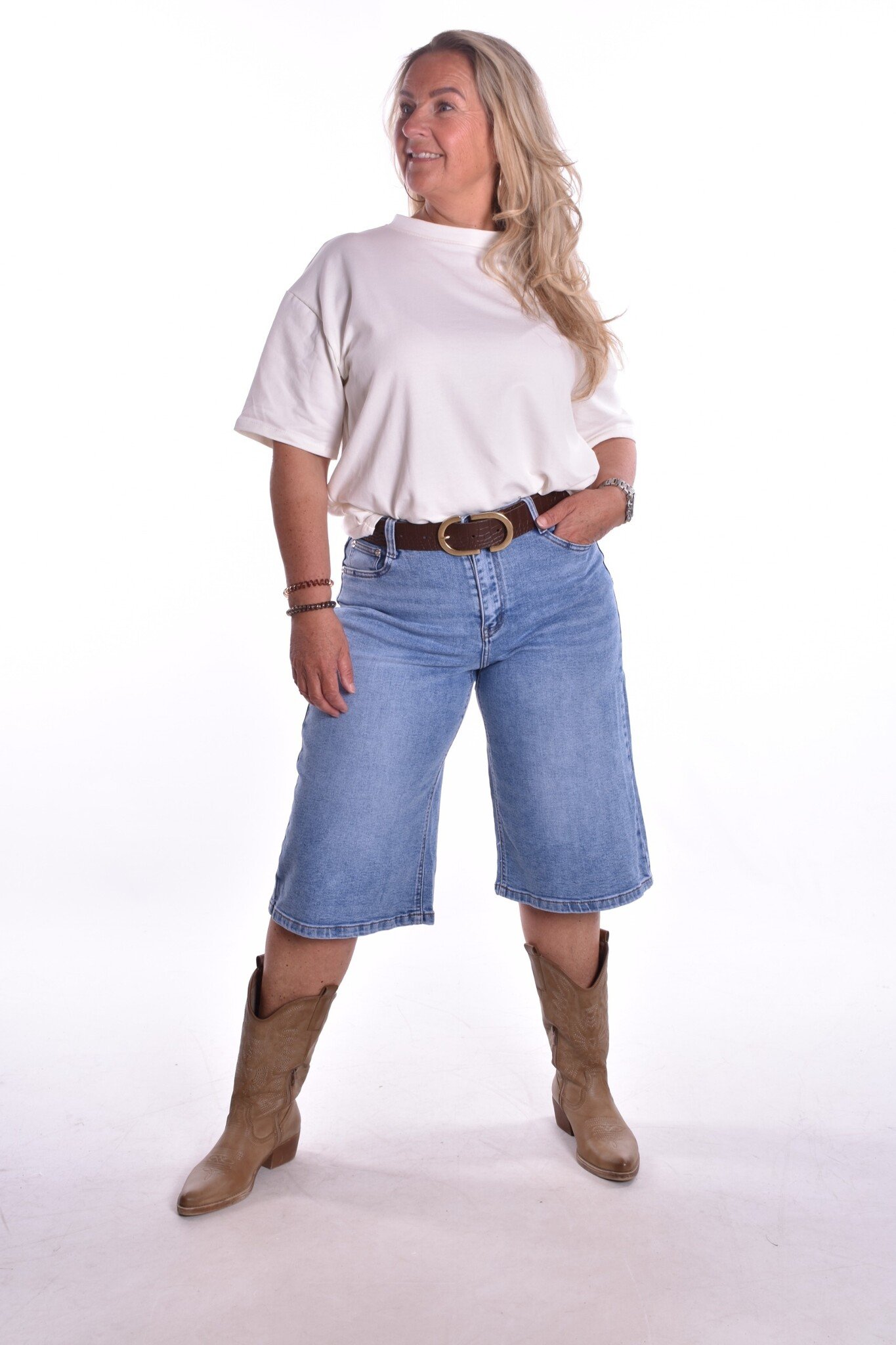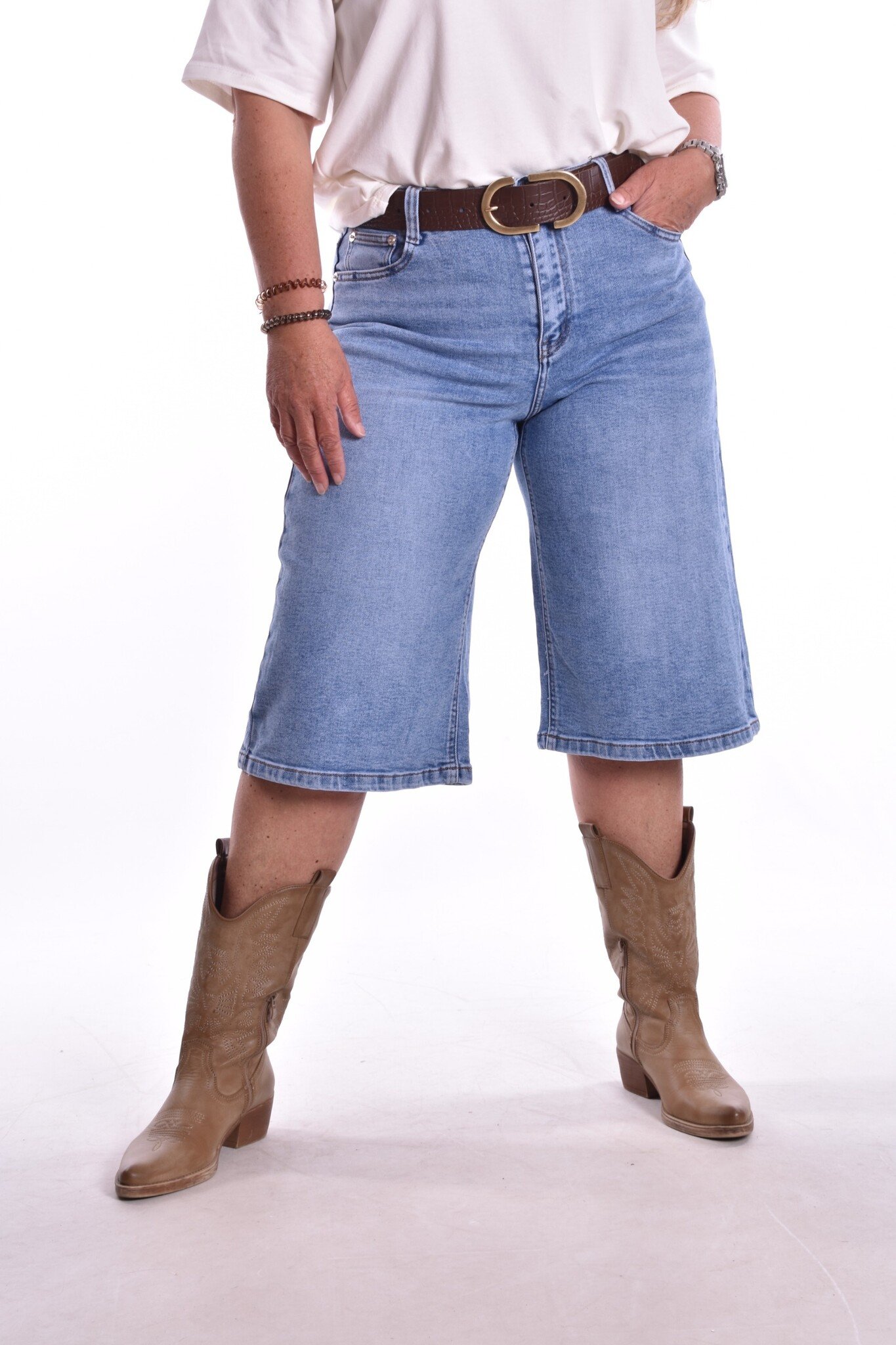 De trend van het moment. Bermuda jeans van Miss Good. Er zit stretch in de broek. Bij deze zit geen riem inclusief.