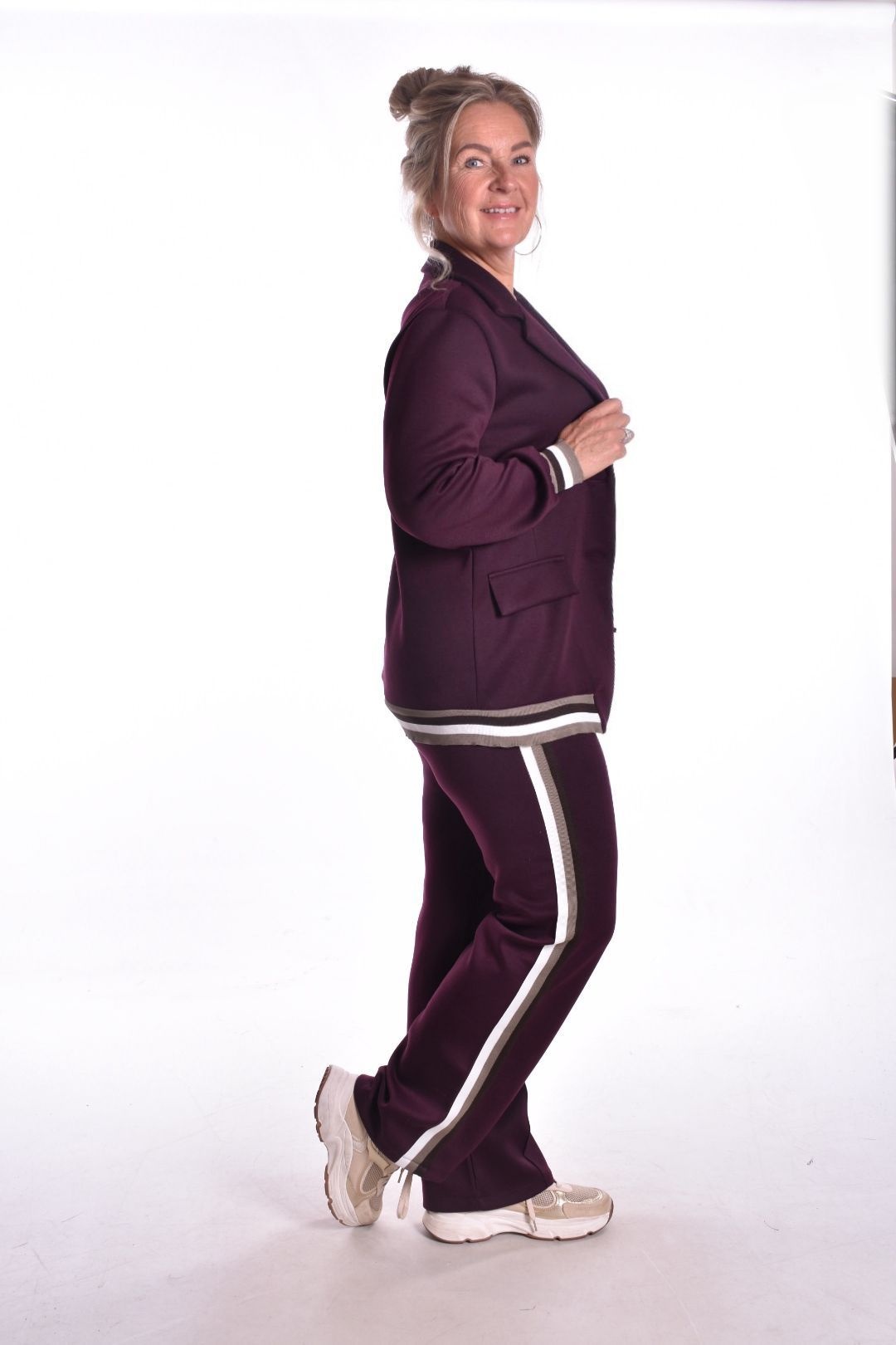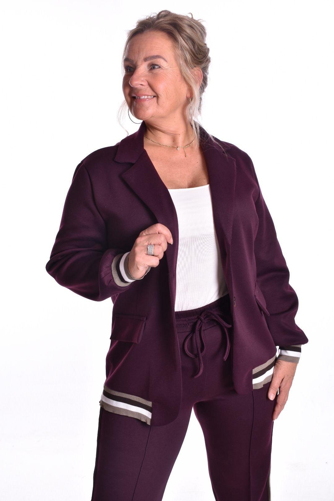 Aan de mouwen en aan de onderkant van de blazer zit een 4 kleurige brede band.