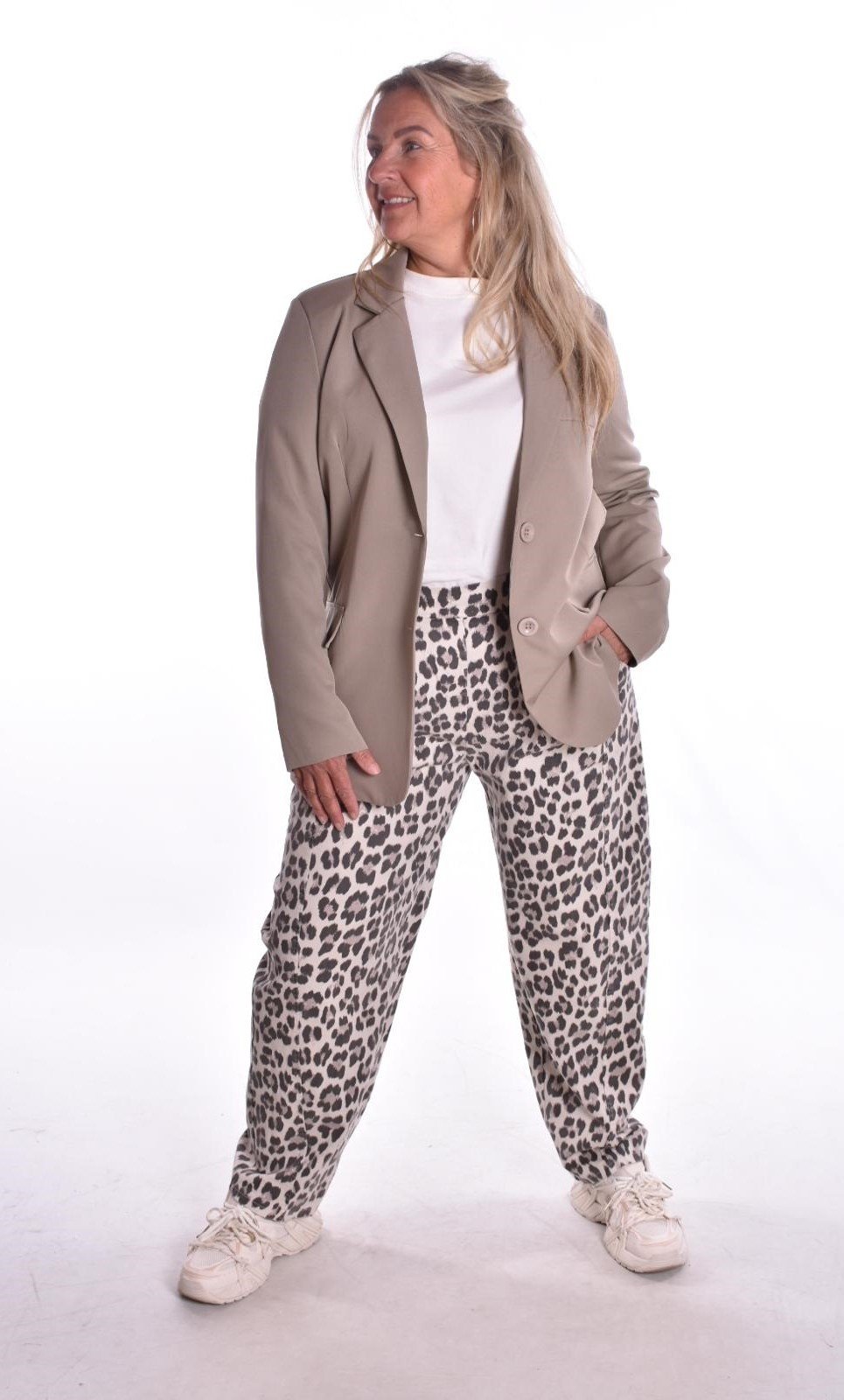 Ons model heeft maat 40, is 165 cm lang en draagt de maat L.