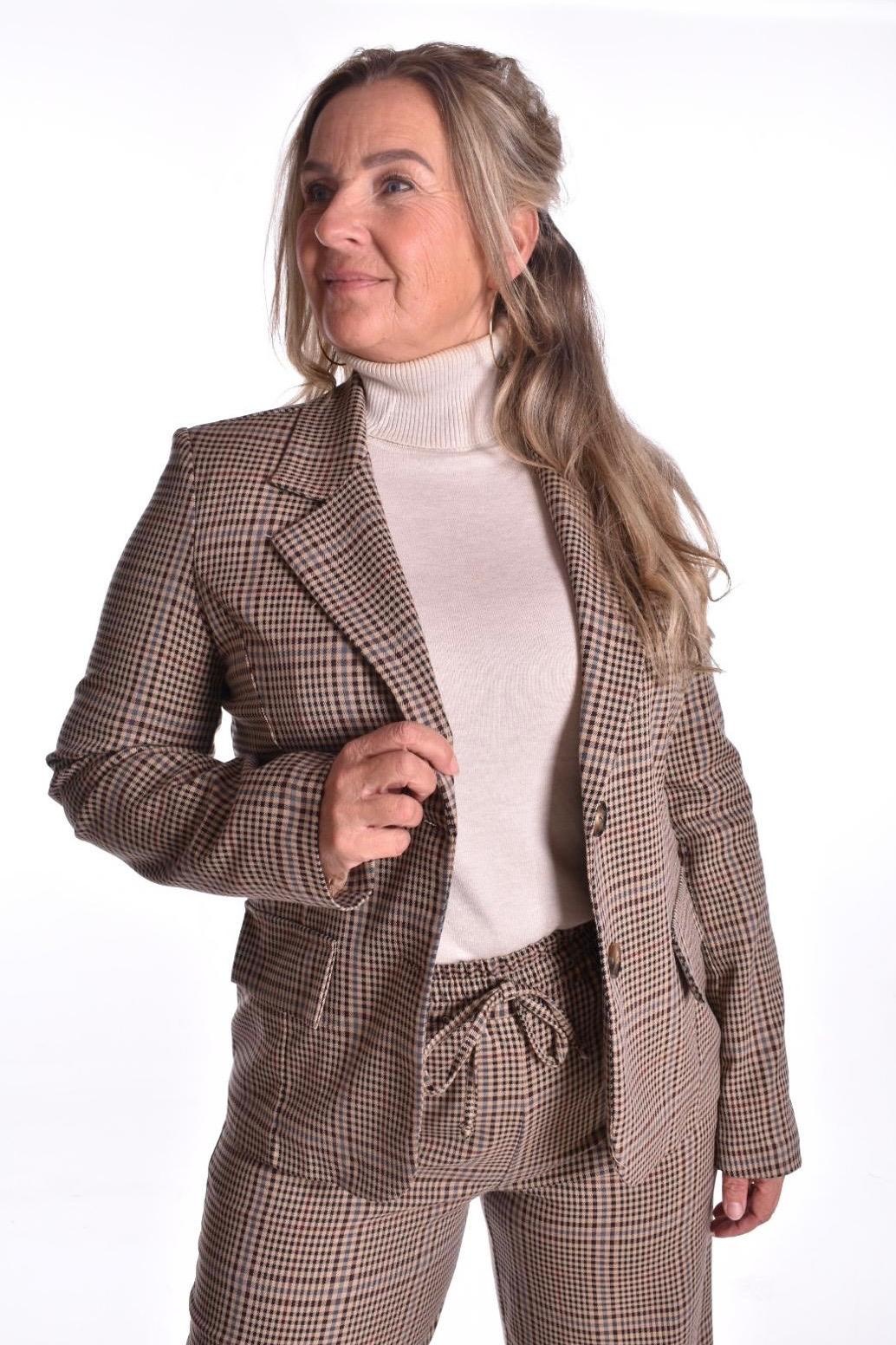 De blazer is gevoerd en heeft een knoopsluiting van 2 knopen.