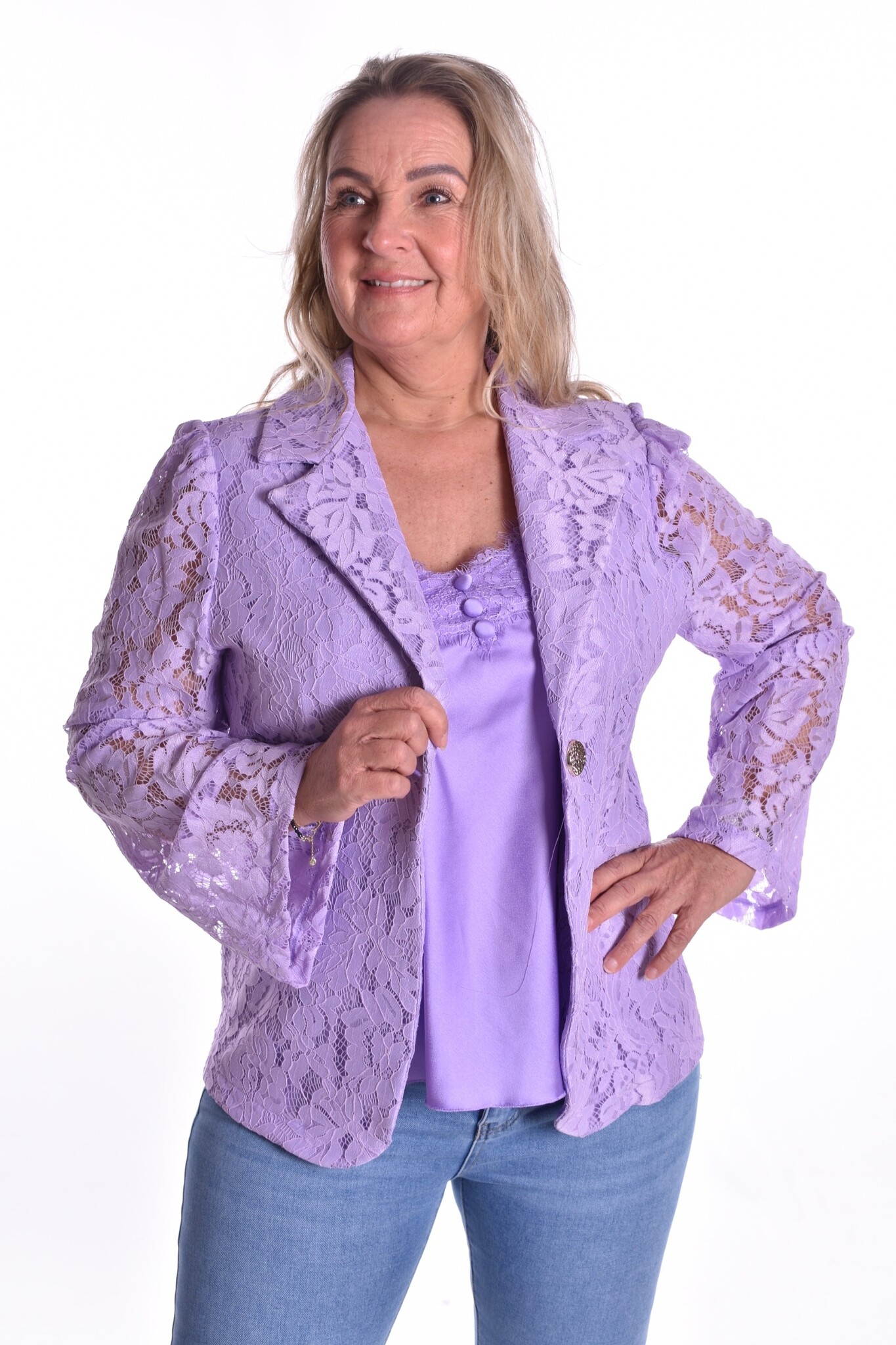 Blazer Romance is een kanten gevoerde blazer met een knoopsluiting.
