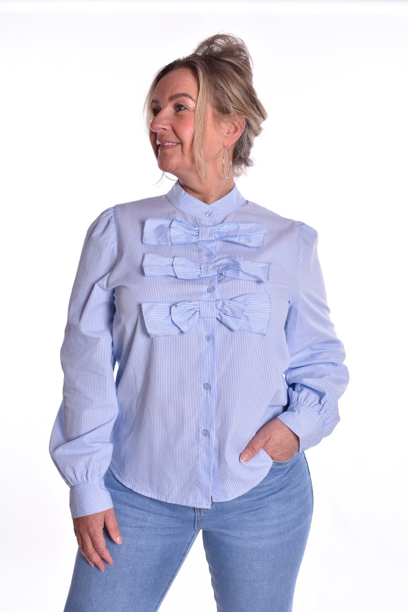 Blouse Bow is een doorgeknoopte blouse met streep patroon erop en 3 prachtige strikken.