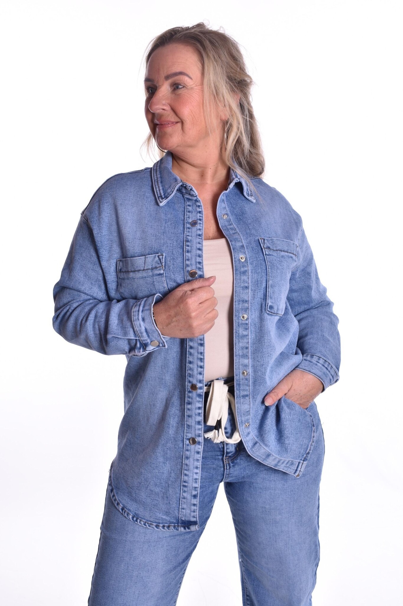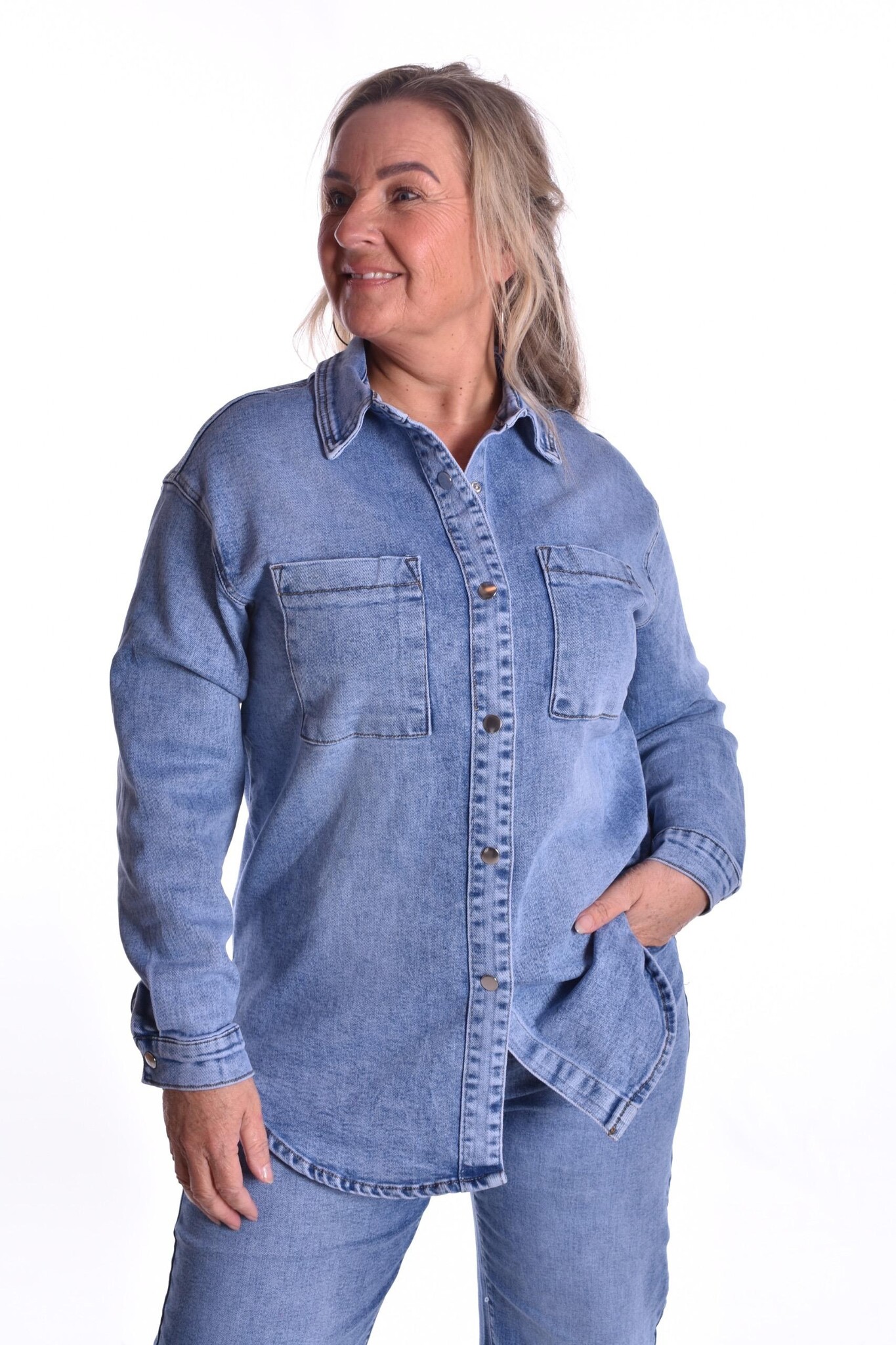 Oversized spijker jasje/blouse met veel stretch en drukknopen - sluiting.