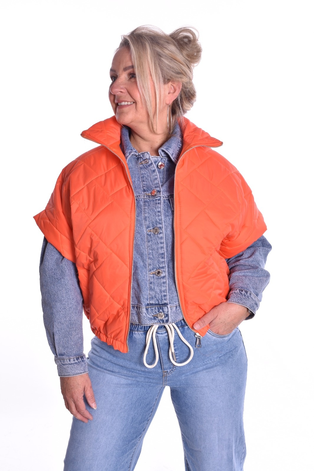 Doorgestikte bodywarmer met steekzakken en ritssluiting.