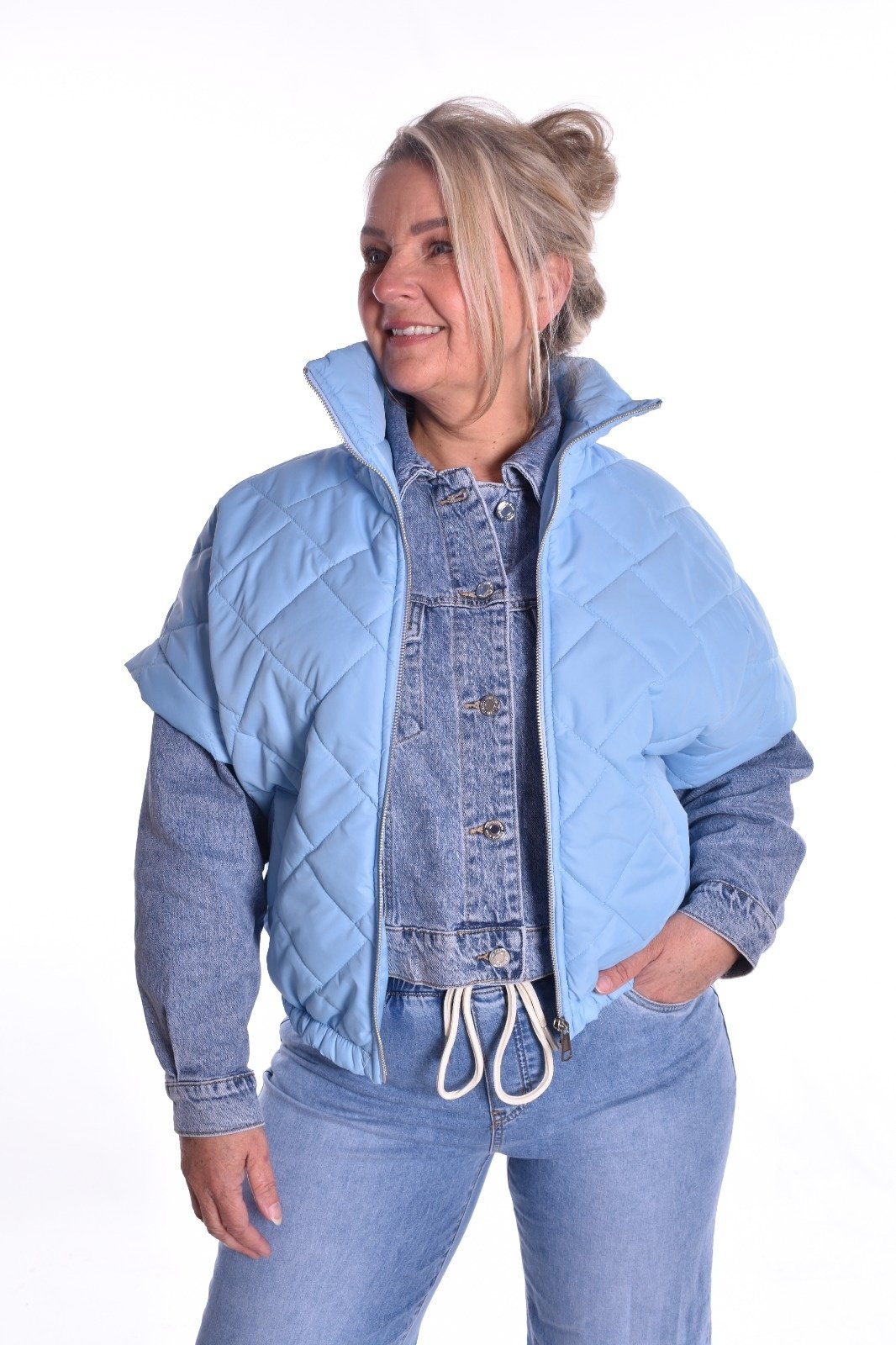Doorgestikte bodywarmer met steekzakken en ritssluiting.