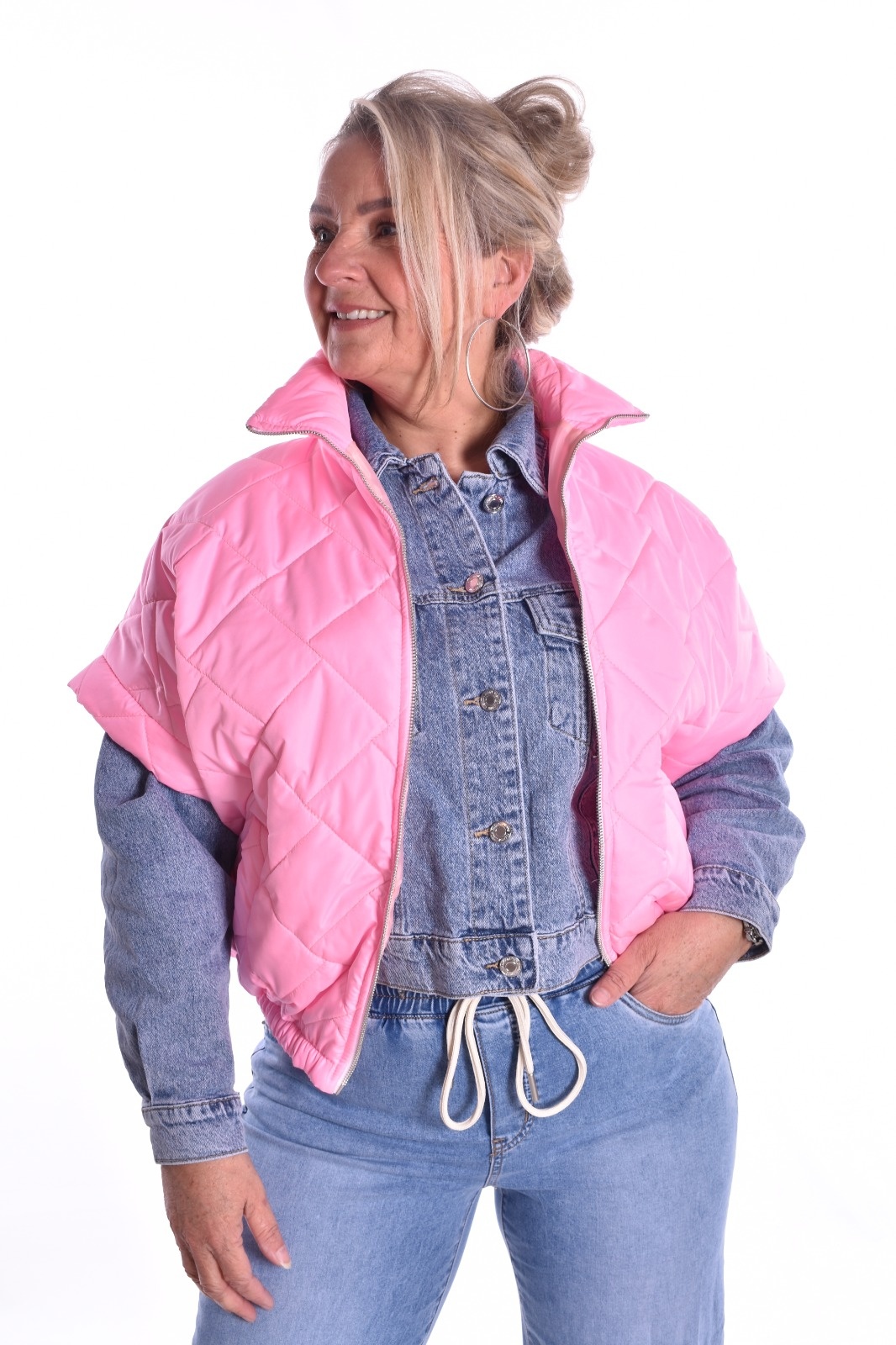Doorgestikte bodywarmer met steekzakken en ritssluiting.