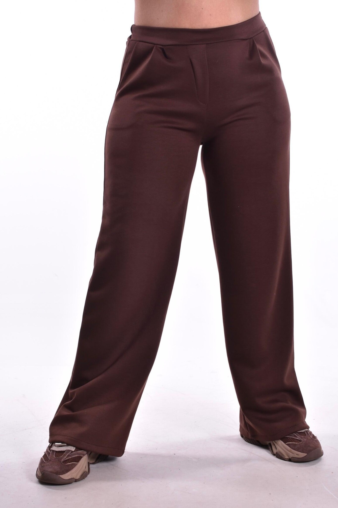 Broek van een hele zachte stof met stretch, steekzakken en een kleine bandplooi.