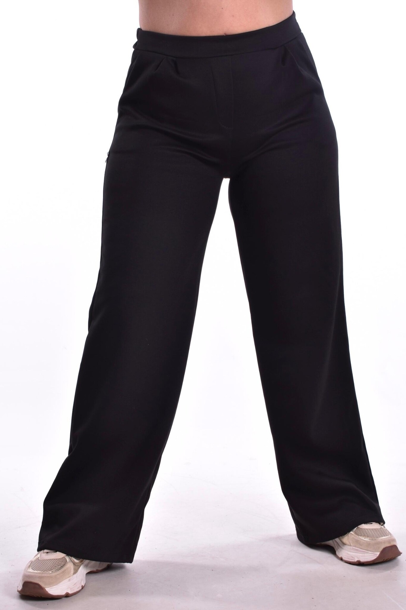 Broek van een hele zachte stof met stretch, steekzakken en een kleine bandplooi.