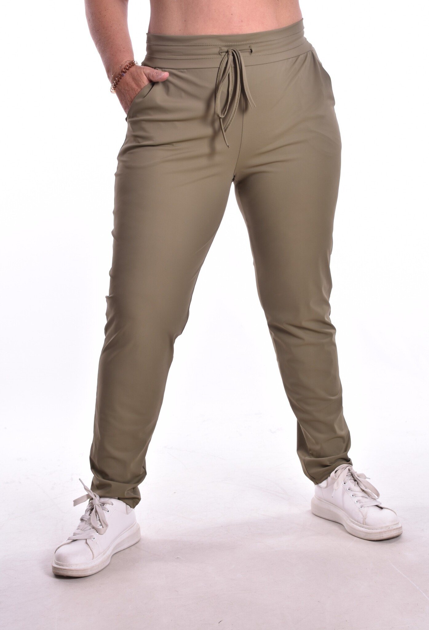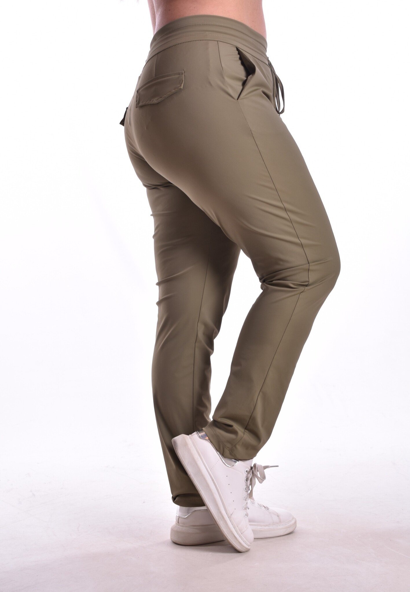 Broek Luxe Travelstof Bij Livi - Legergroen