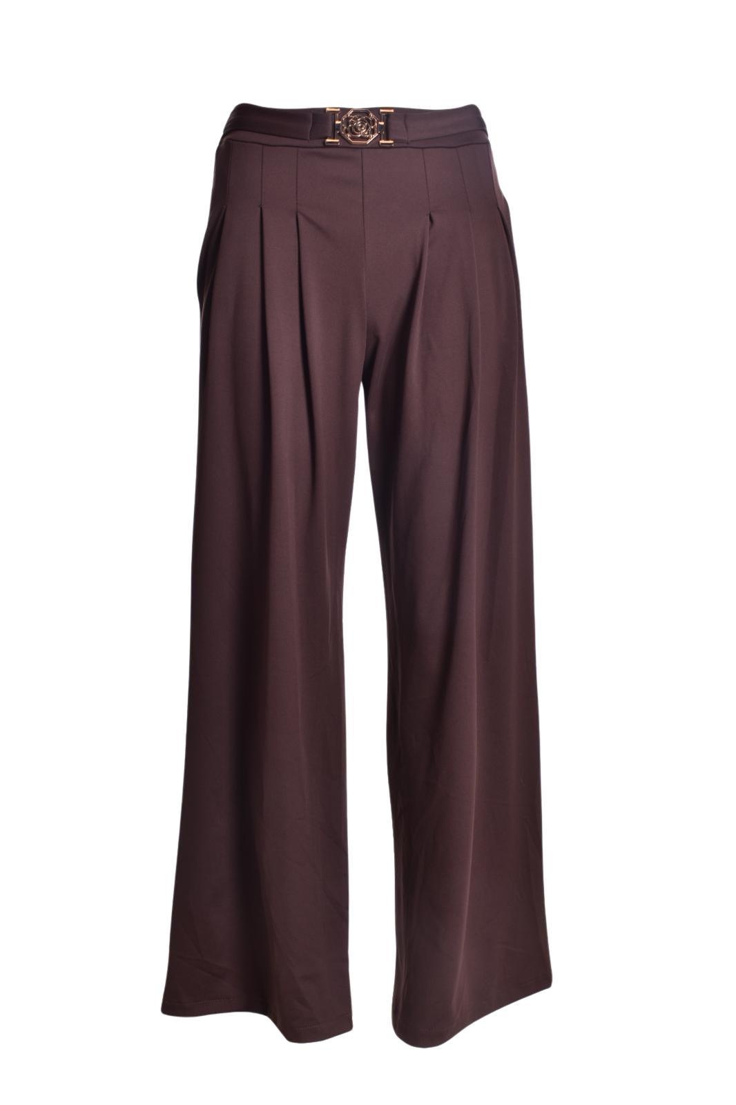 De broek is van een zware, wat dikkere travelstof met plooiband.
