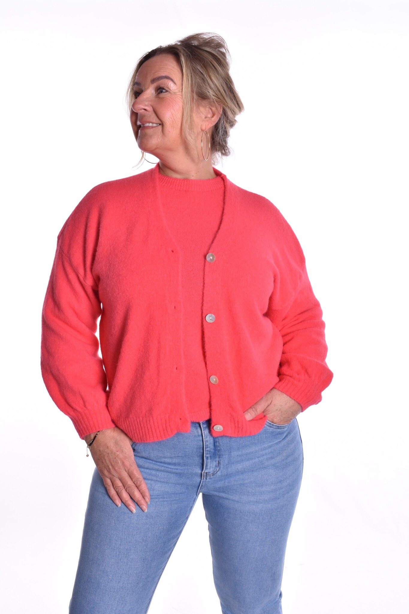 Gebreid Vest Fabi - Koraal