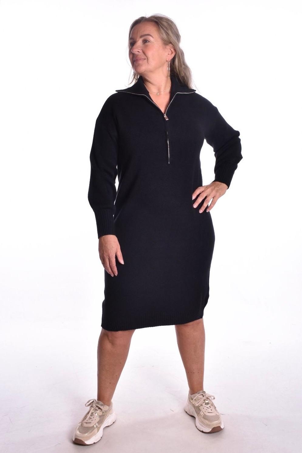 Gebreide Jurk Zip - Zwart