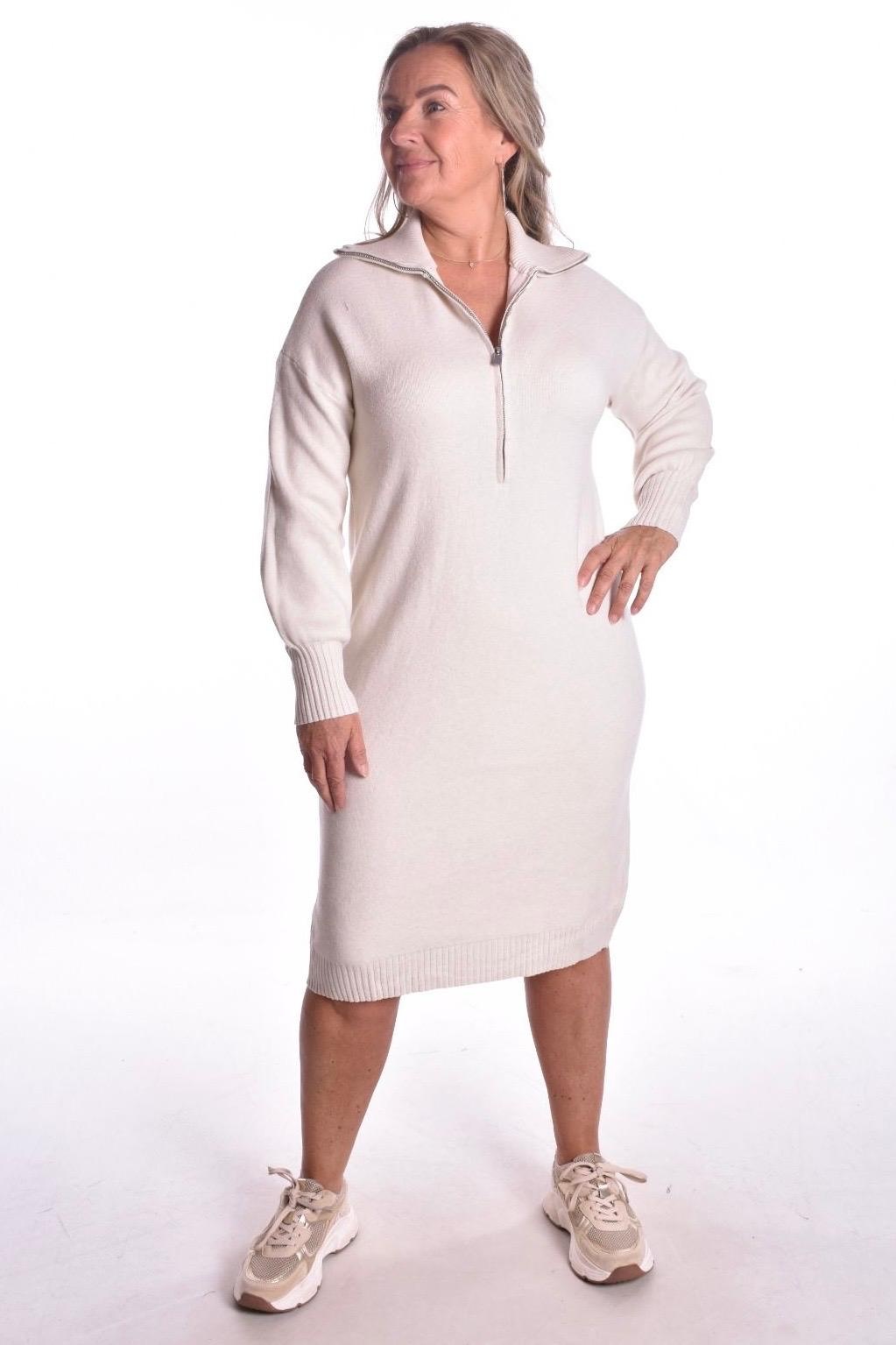 Gebreide Jurk Zip is een stevig gebreide jurk met kraag en rits.