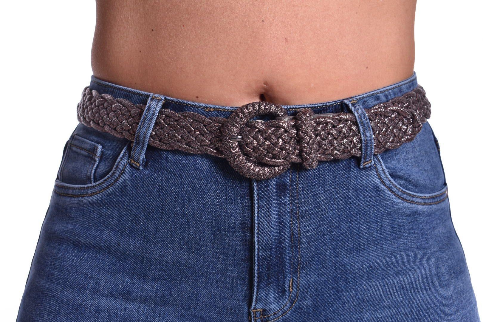 Gevlochten stretch riem - Metallic Choco