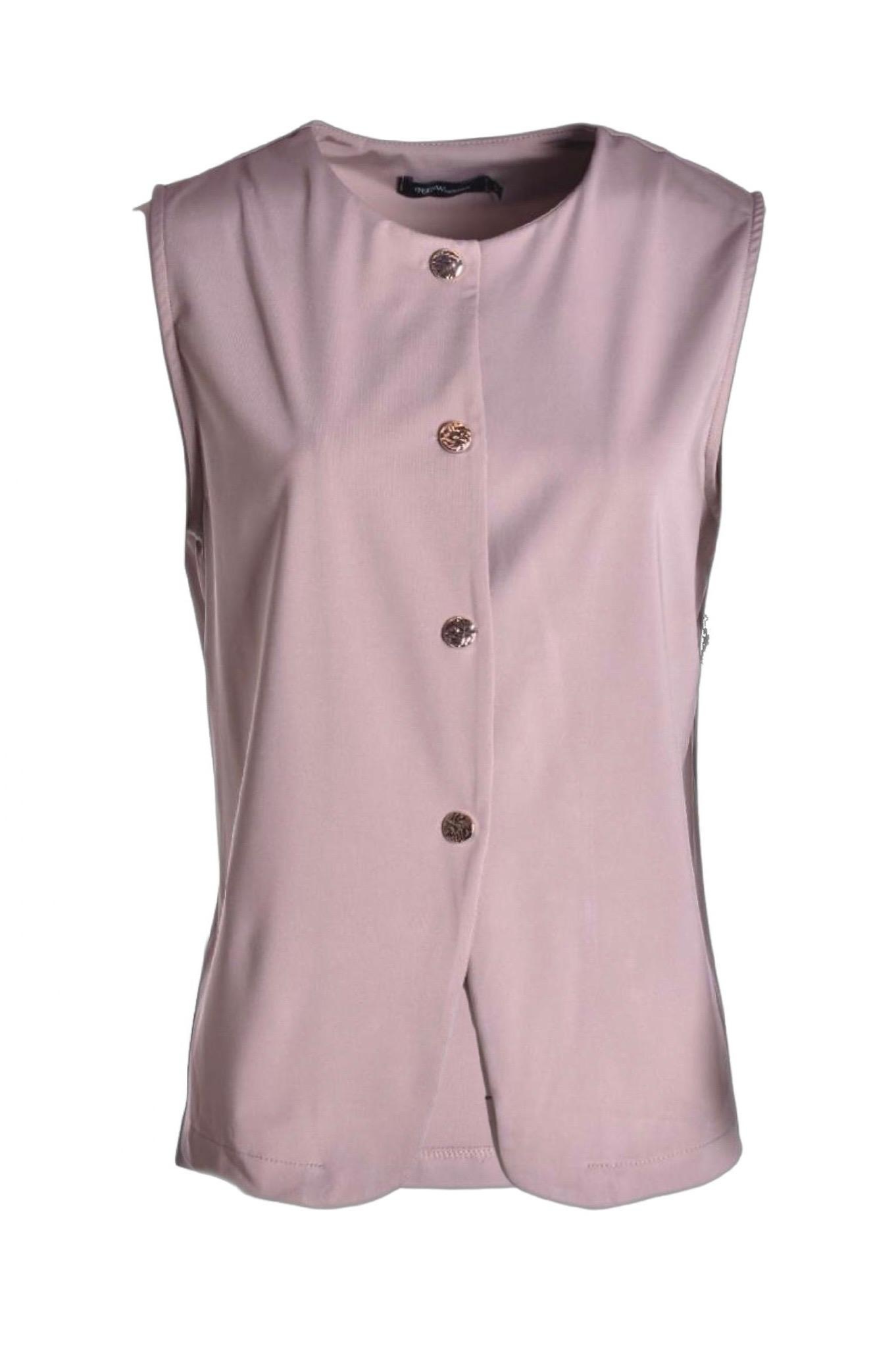 Het gilet is van een zware, wat dikkere travelstof met knoopsluiting van 4 goudkleurige knoopjes.