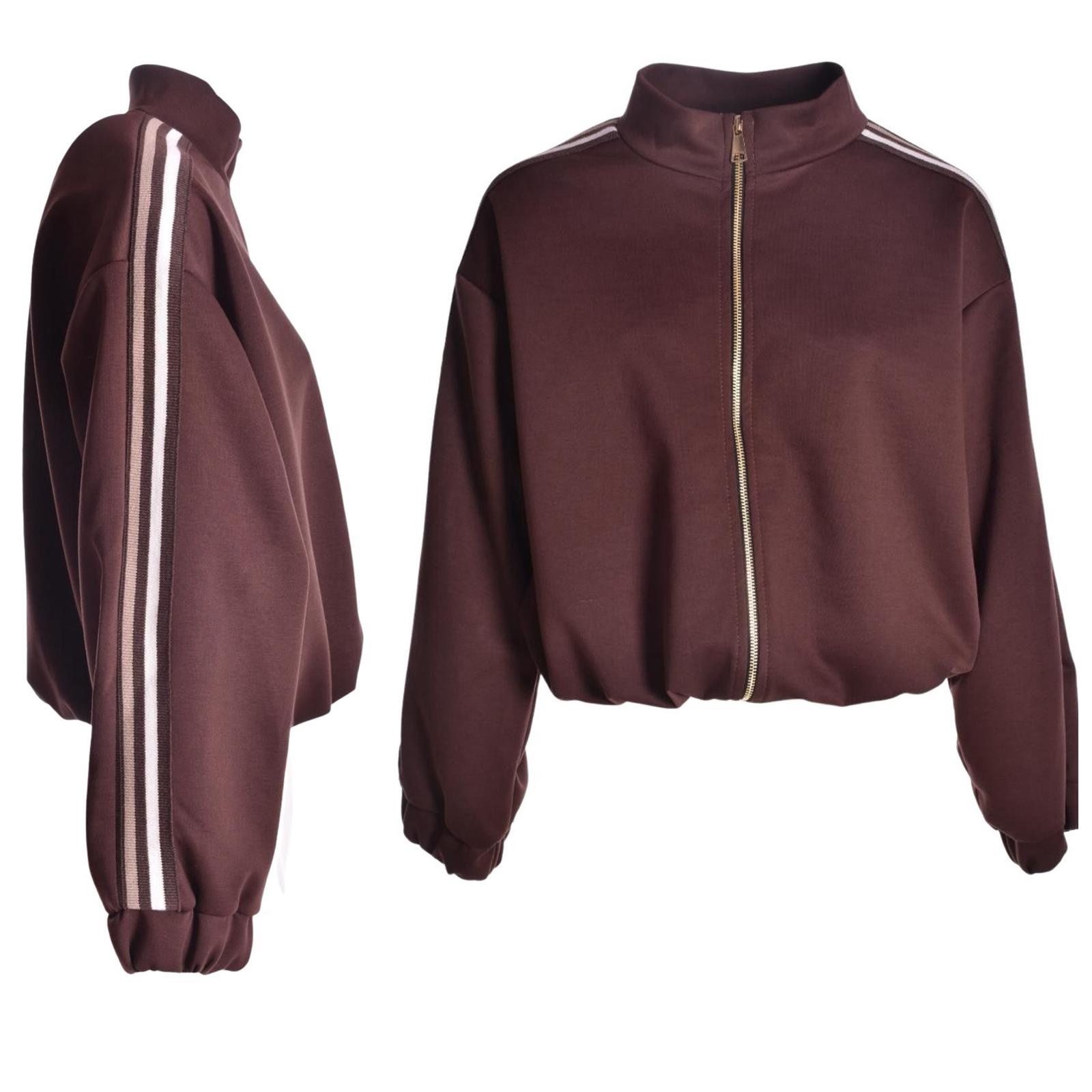 Jasje Milano is lekker van een soort wat dikker jogging stofje, het jasje heeft zakken en op de mouwen zit een mooie 3 kleurige brede bies.
