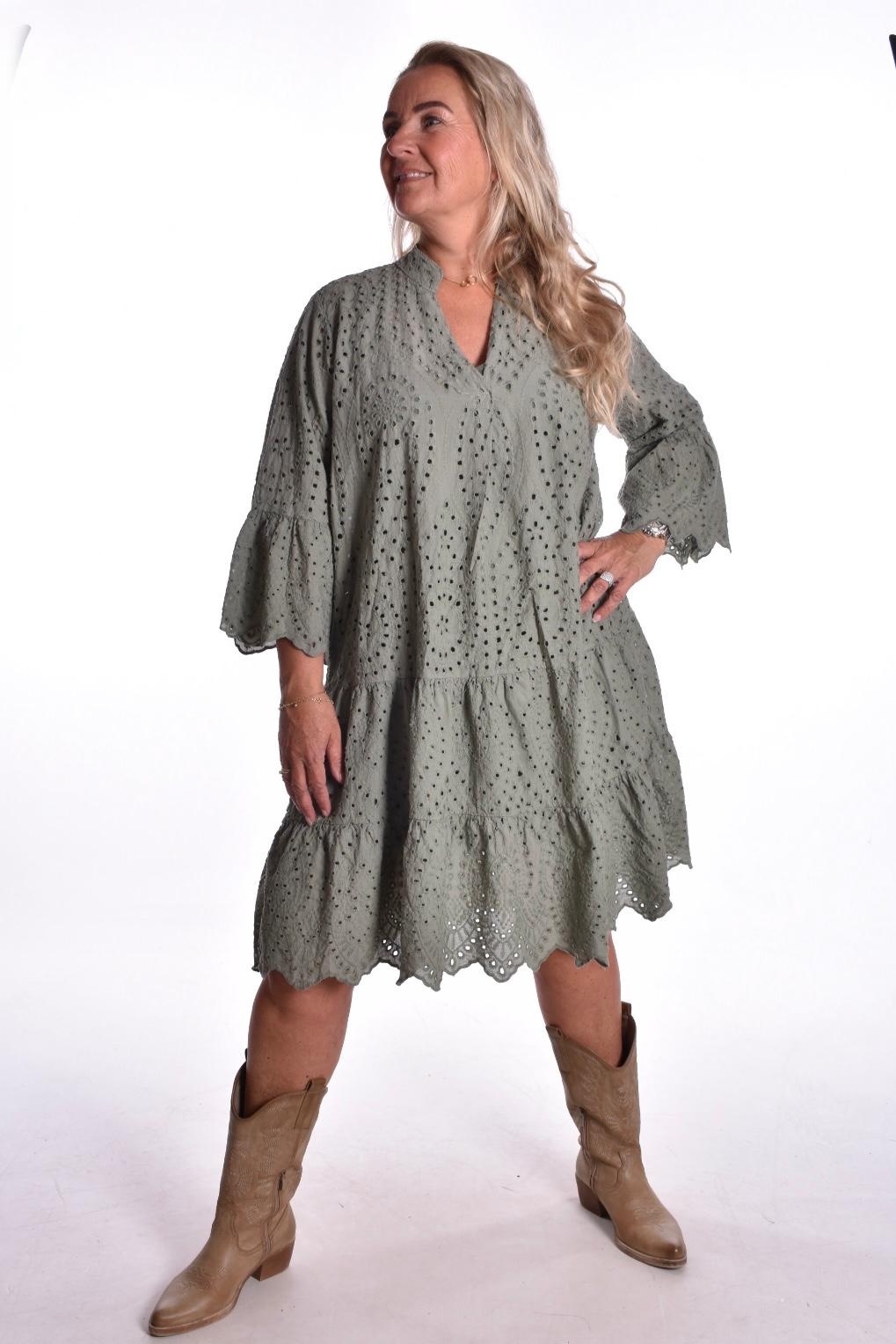 Broderie jurk van Katoen, de jurk heeft een fijne lengte.