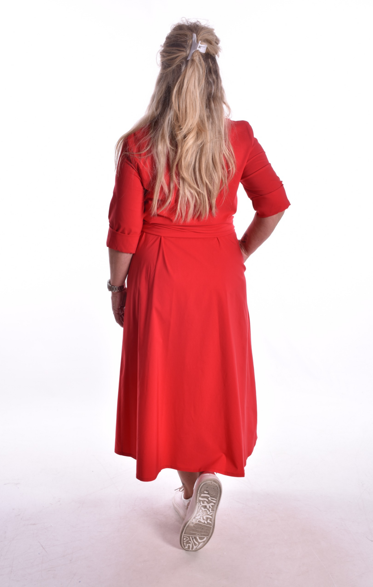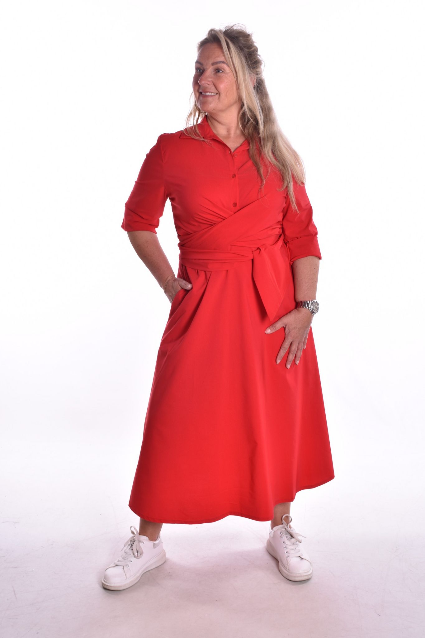 Wikkeljurk van een prachtige stof met stretch. De jurk heeft een overhemdkraag, knoopjes en steekzakken.