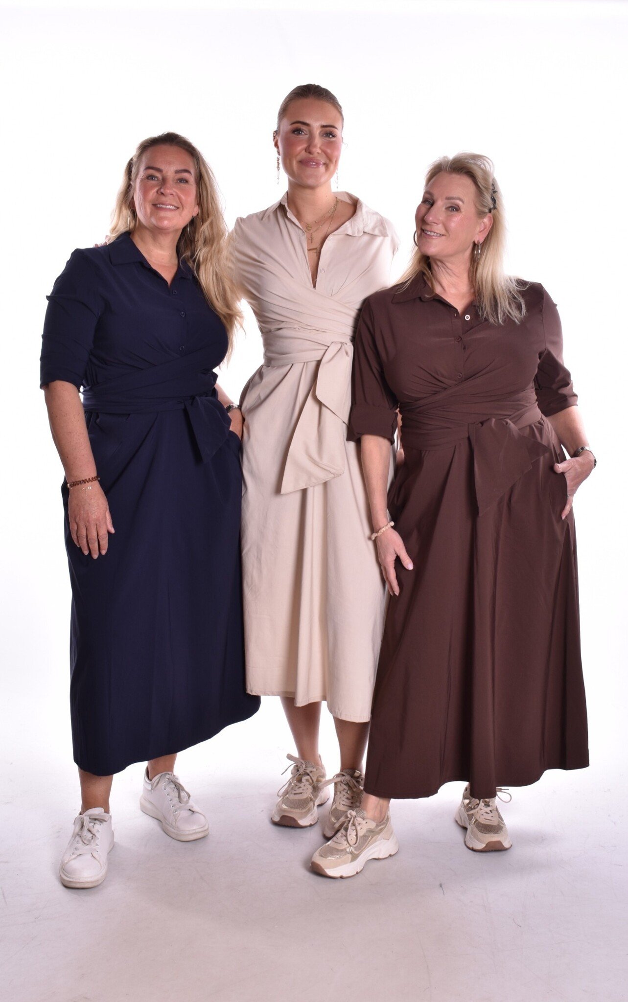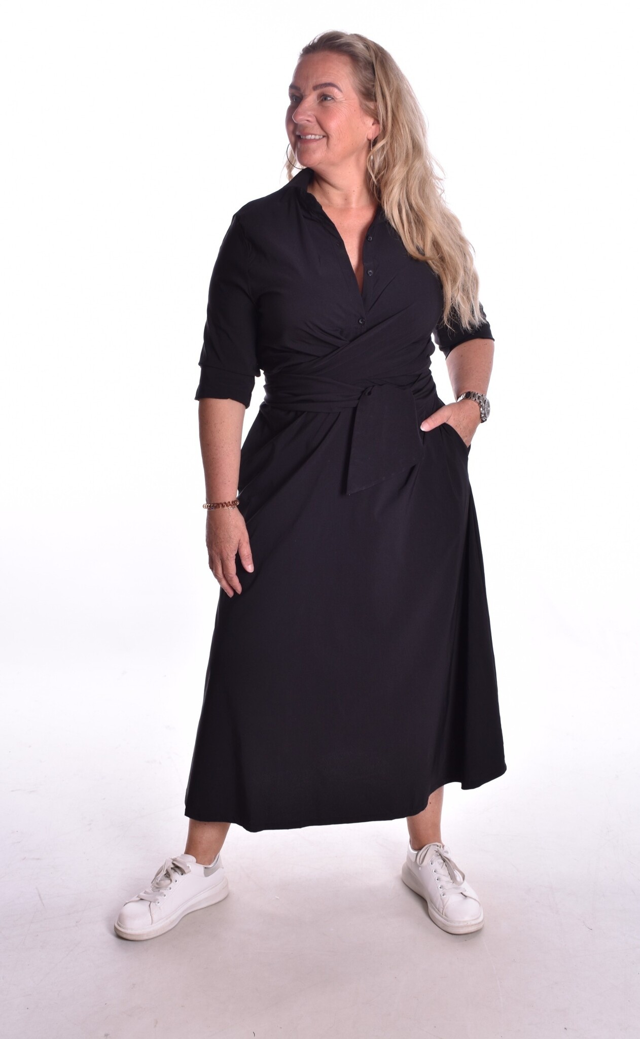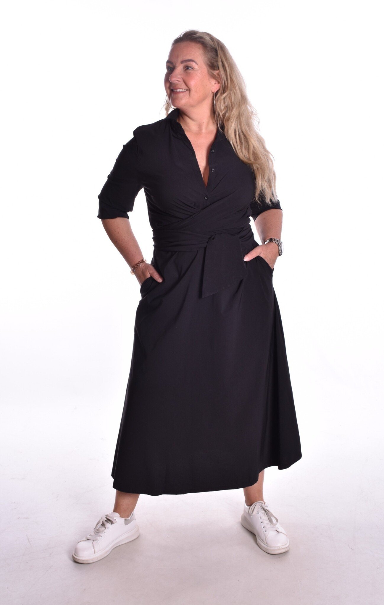 Wikkeljurk van een prachtige stof met stretch. De jurk heeft een overhemdkraag, knoopjes en steekzakken.