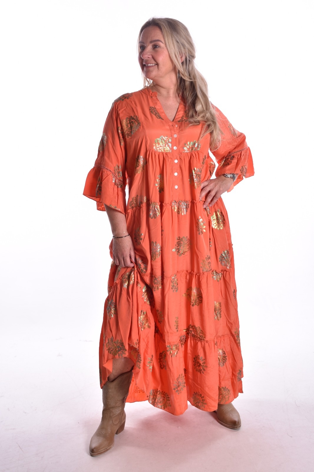 De jurk is er in één maat en wij adviseren dat de jurk gedragen kan worden vanaf maat 40 t/m maat 44-46.