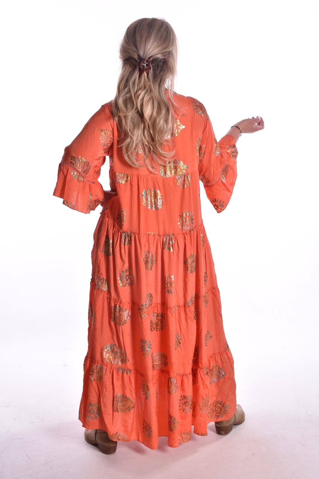 Prachtige kwaliteit met 70% zijden. De jurk is een ruimvallend model met stroken.