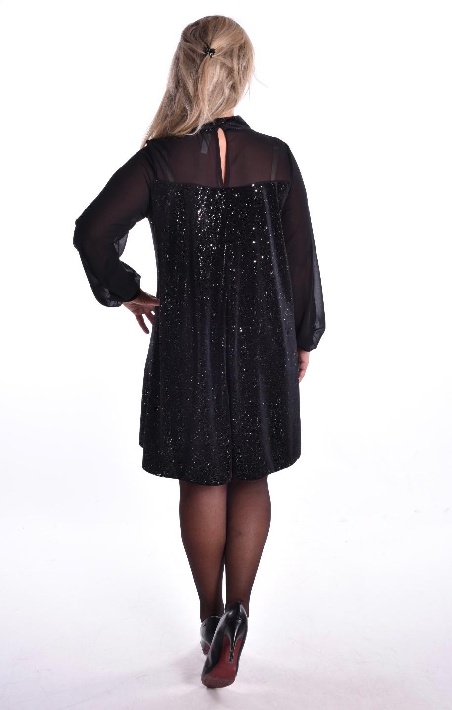 Jurk Party met Voile is van een zachte velvet stof met glimmertjes.