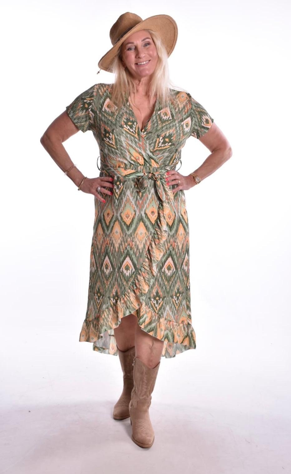 Jurk Soleil is een overslag jurk die wel dicht is. Dus geen openwaai toestanden. De jurk heeft een strik ceintuurtje.