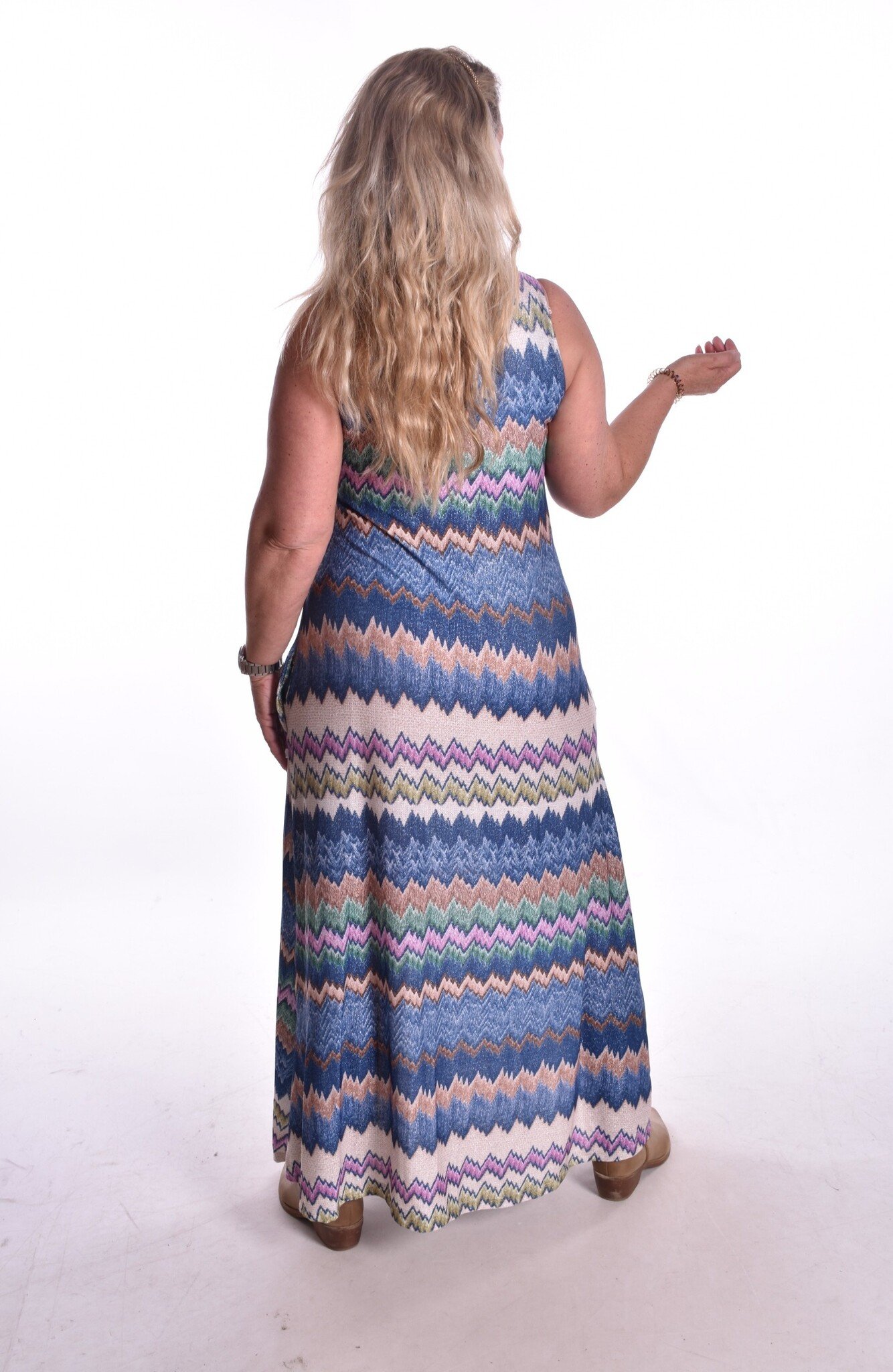 De jurk is er in één maat en wij adviseren dat de jurk te dragen is t/m maat 42.