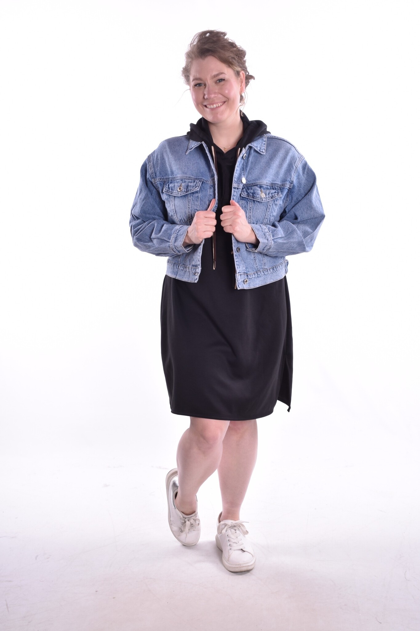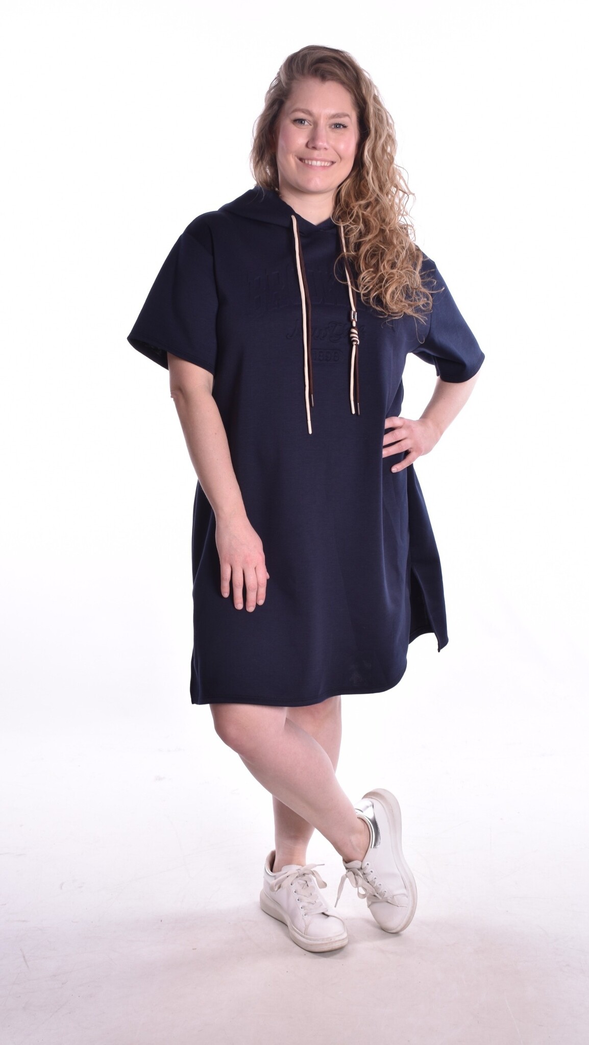 Joggings Jurkje met capuchon. Op de jurk zit en 3-D tekst en leuke koordjes.