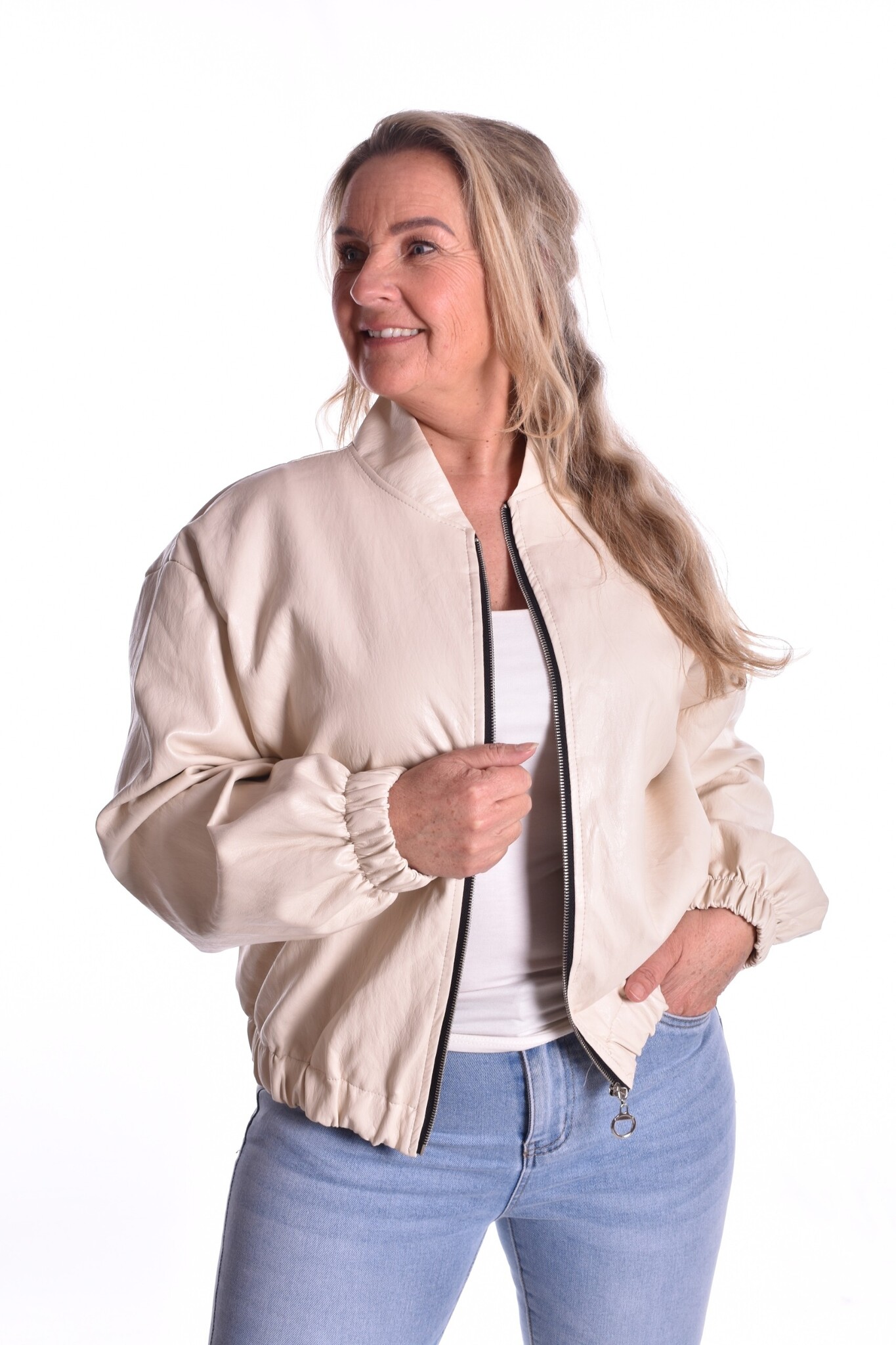 Leatherlook Bomber - Beige