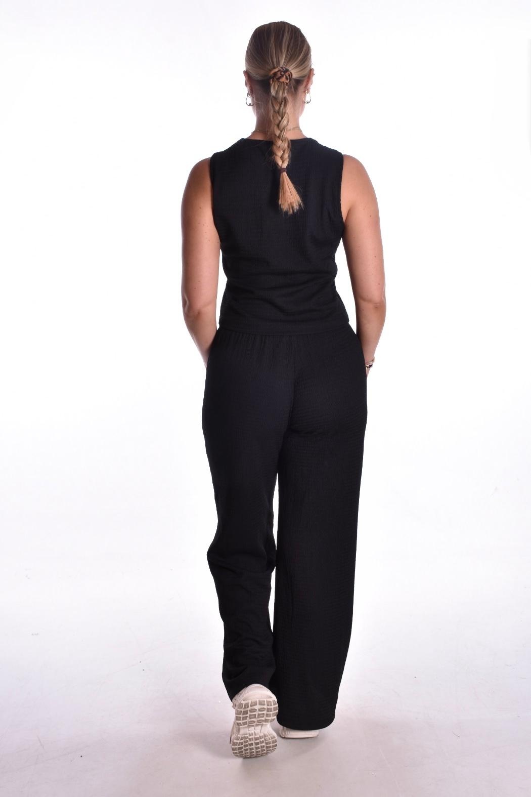 Gilet en broek met een elastieken taille en aanrijgkoordje.