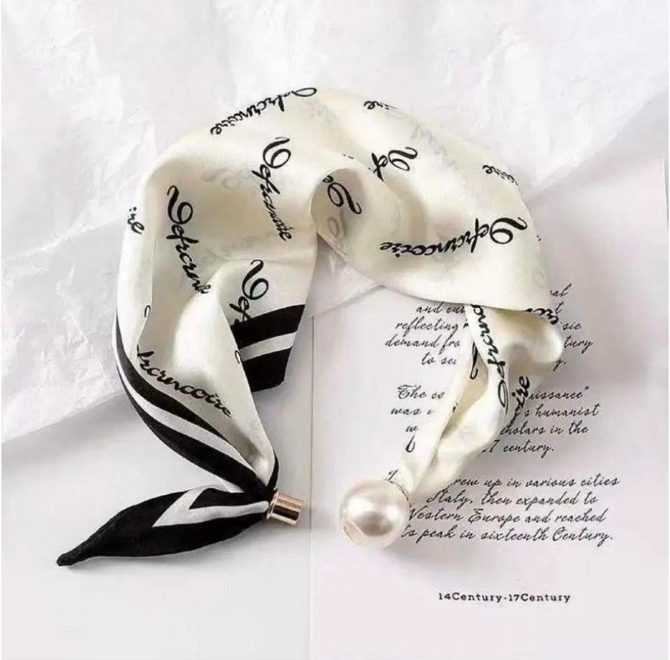 Satijnen sjaaltje met magneet parel sluiting.