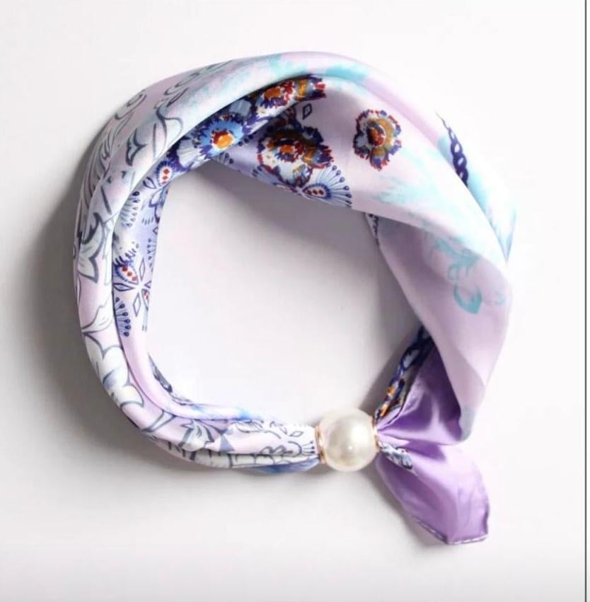 Satijnen sjaaltje met magneet parel sluiting.
