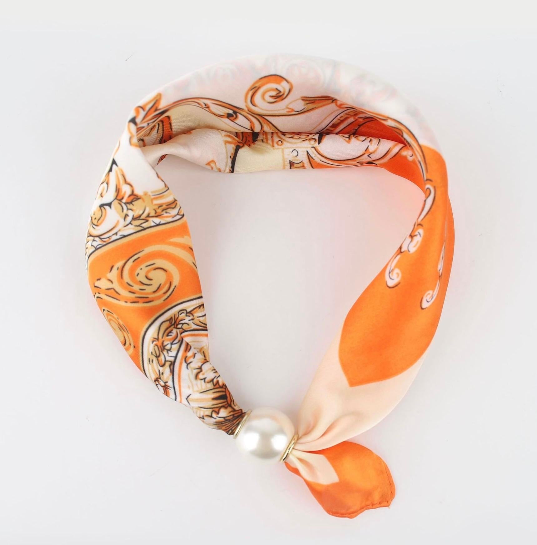 Satijnen sjaaltje met magneet parel sluiting.
