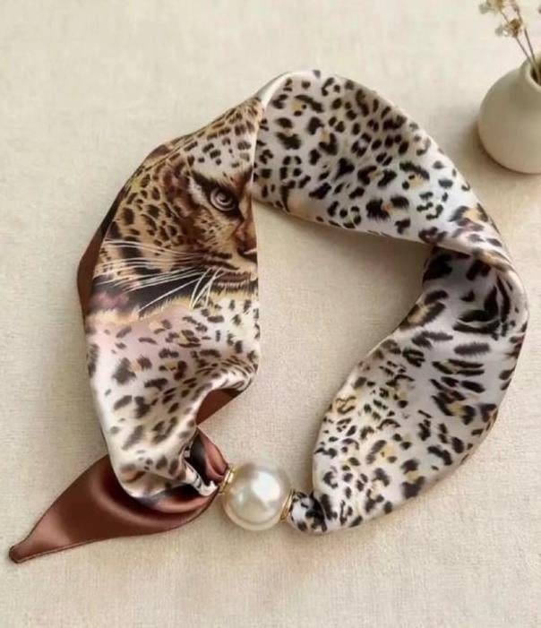 Satijnen sjaaltje met magneet parel sluiting.