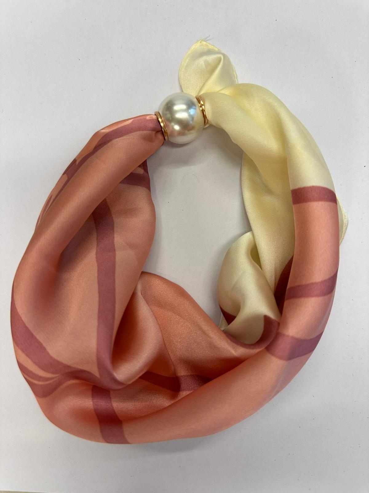 Satijnen sjaaltje met magneet parel sluiting.