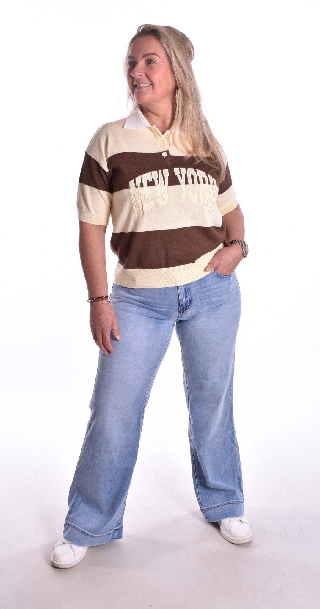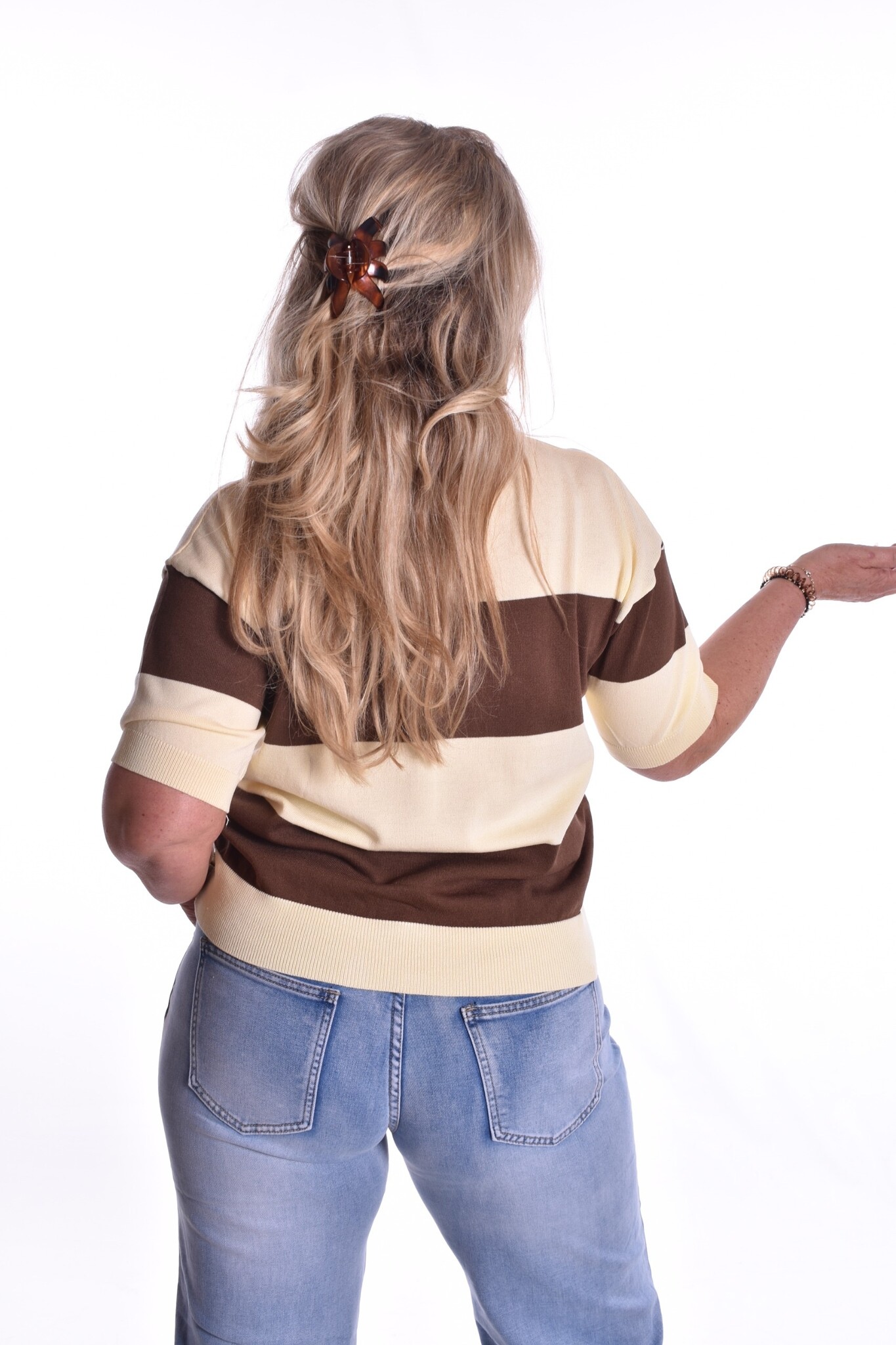 Ons model heeft maat 40 en is 165 cm lang.
