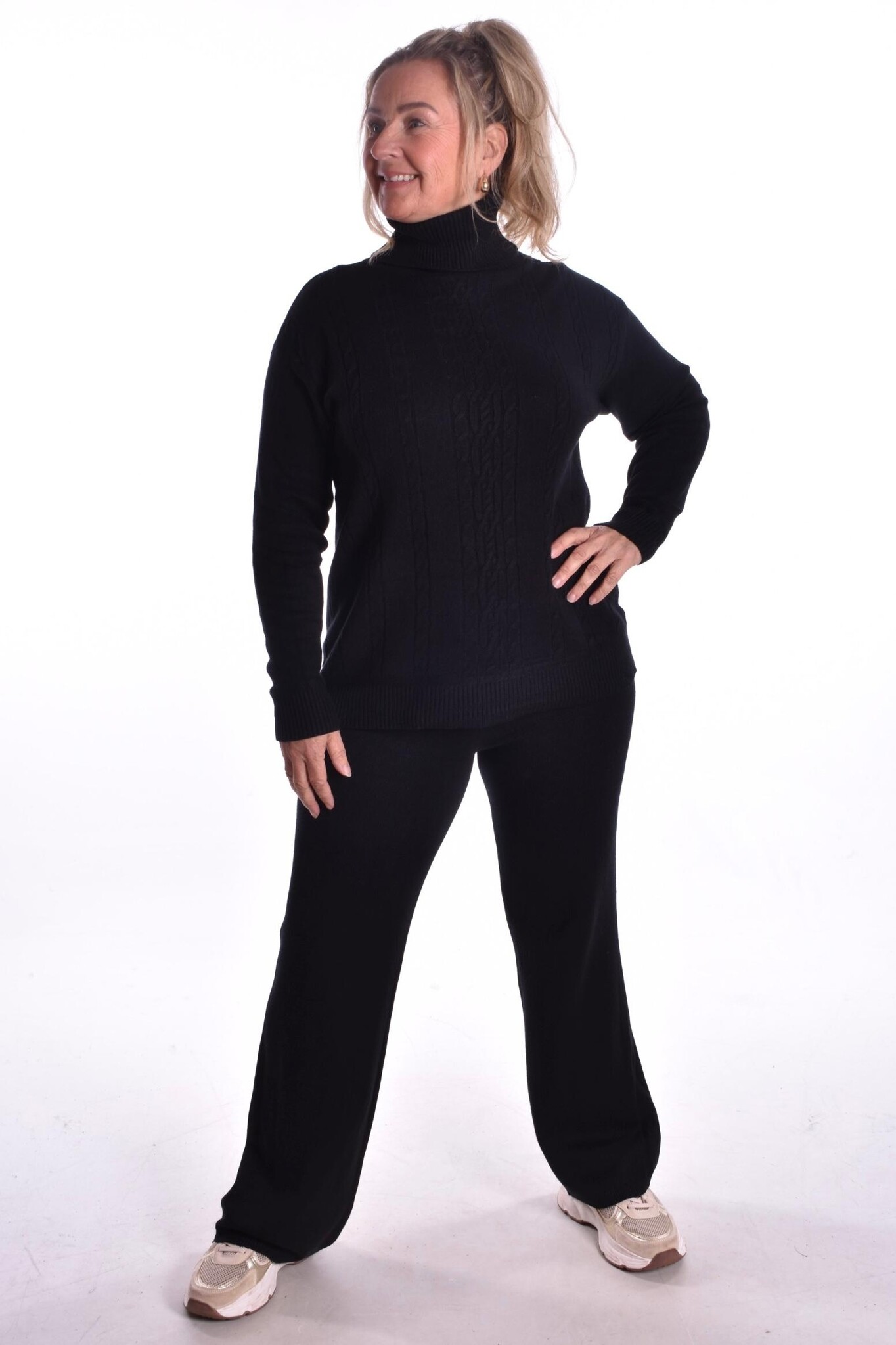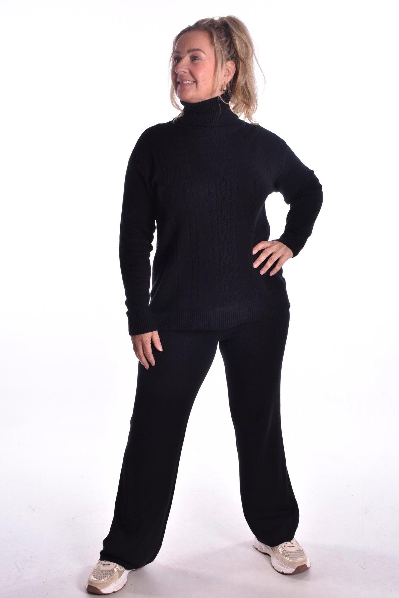 Set Emma is een complete set van zacht fijn breisel en een mooie kwaliteit. Met een kabel motief in de trui en een kol. De broek heeft een aanrijgkoordje.