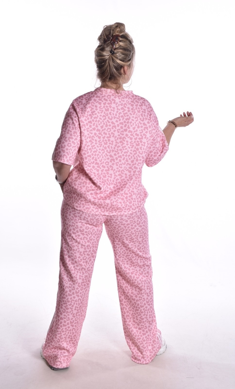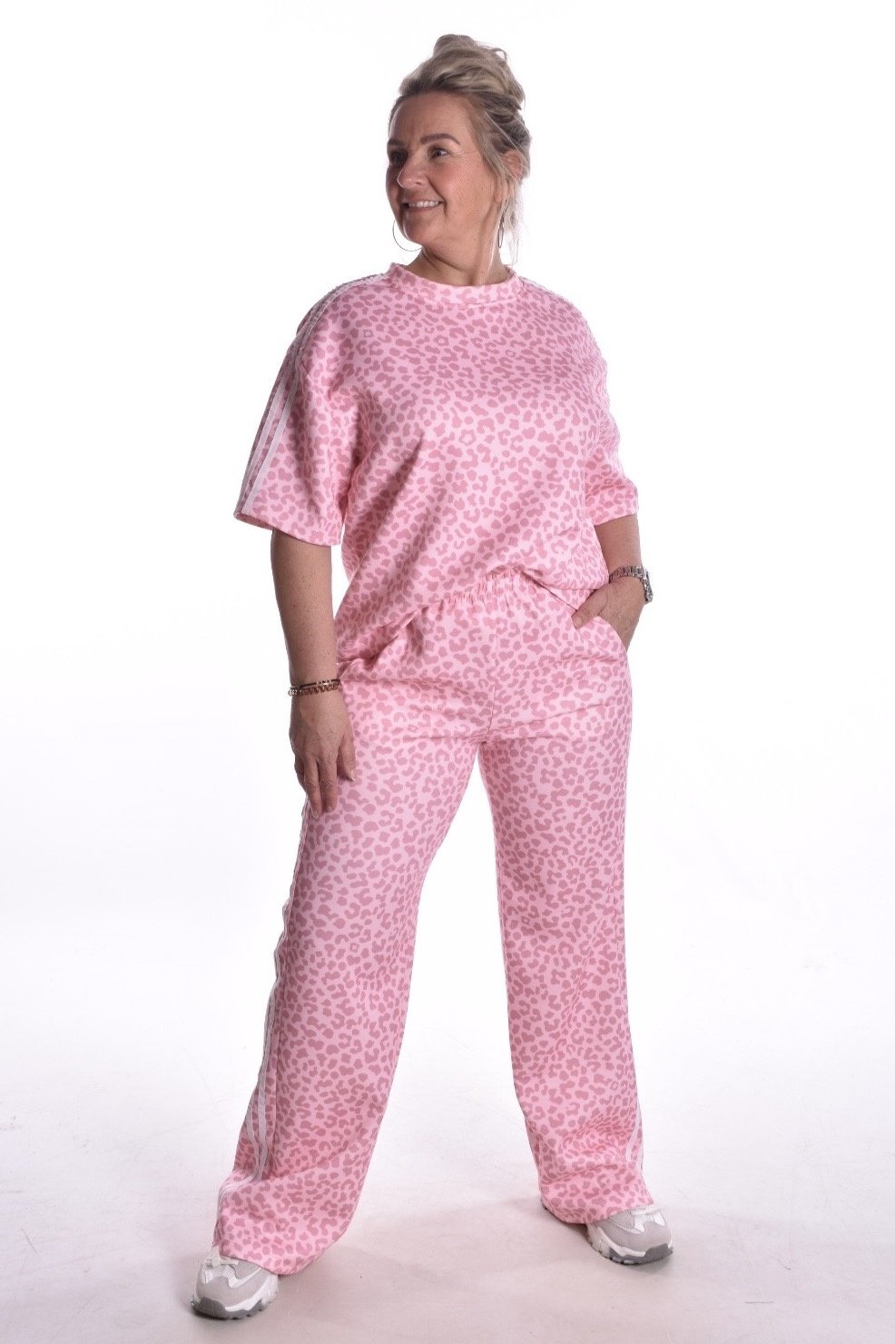 Set Jane is een prachtige tweedelige set van een lekker zacht stofje. De broek heeft elastiek in de taille.