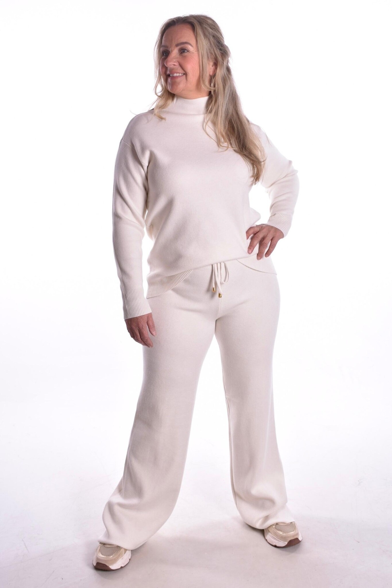 Set Lotte is een set van zacht fijn breisel. De broek heeft een aanrijgkoord, en valt lekker lang.