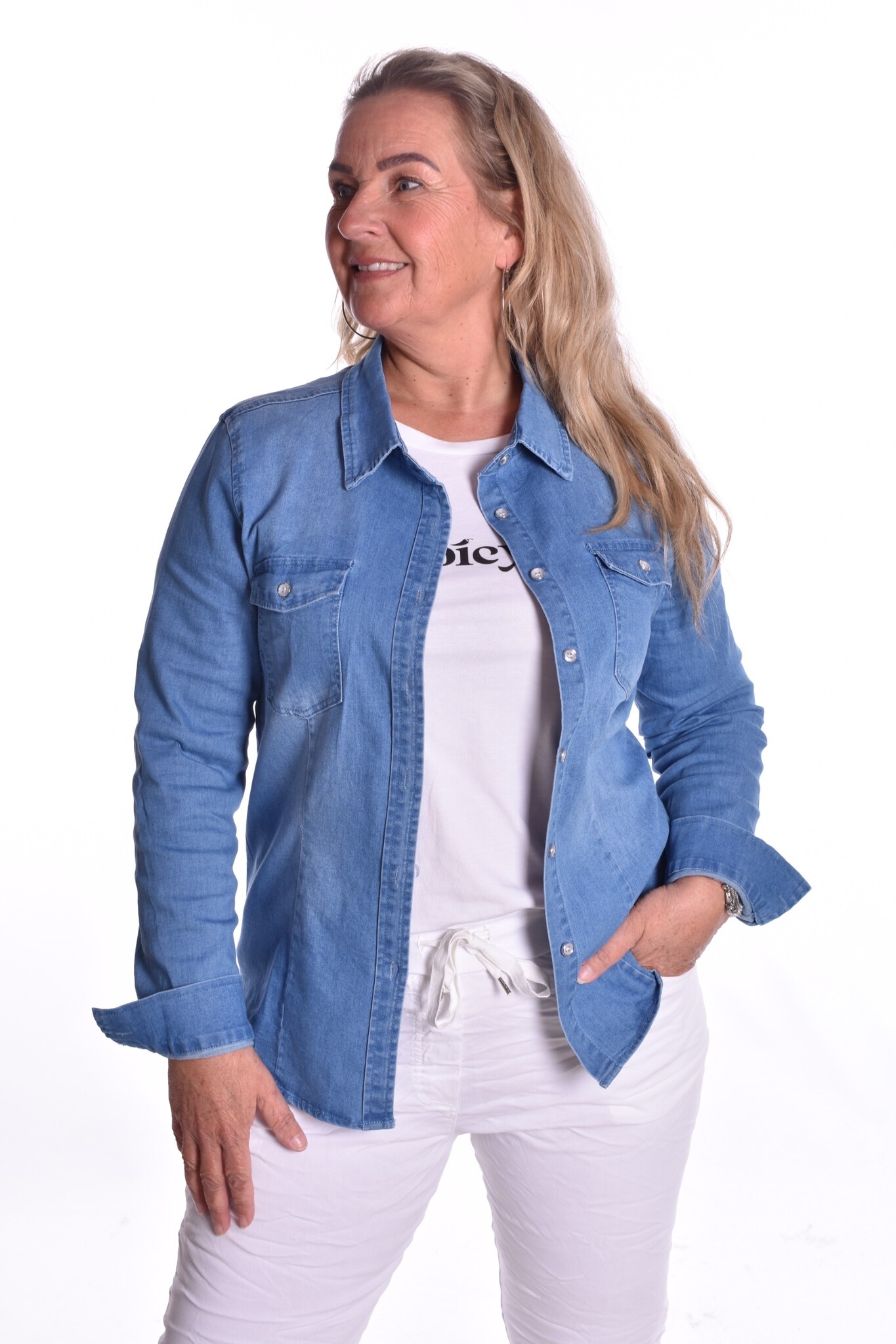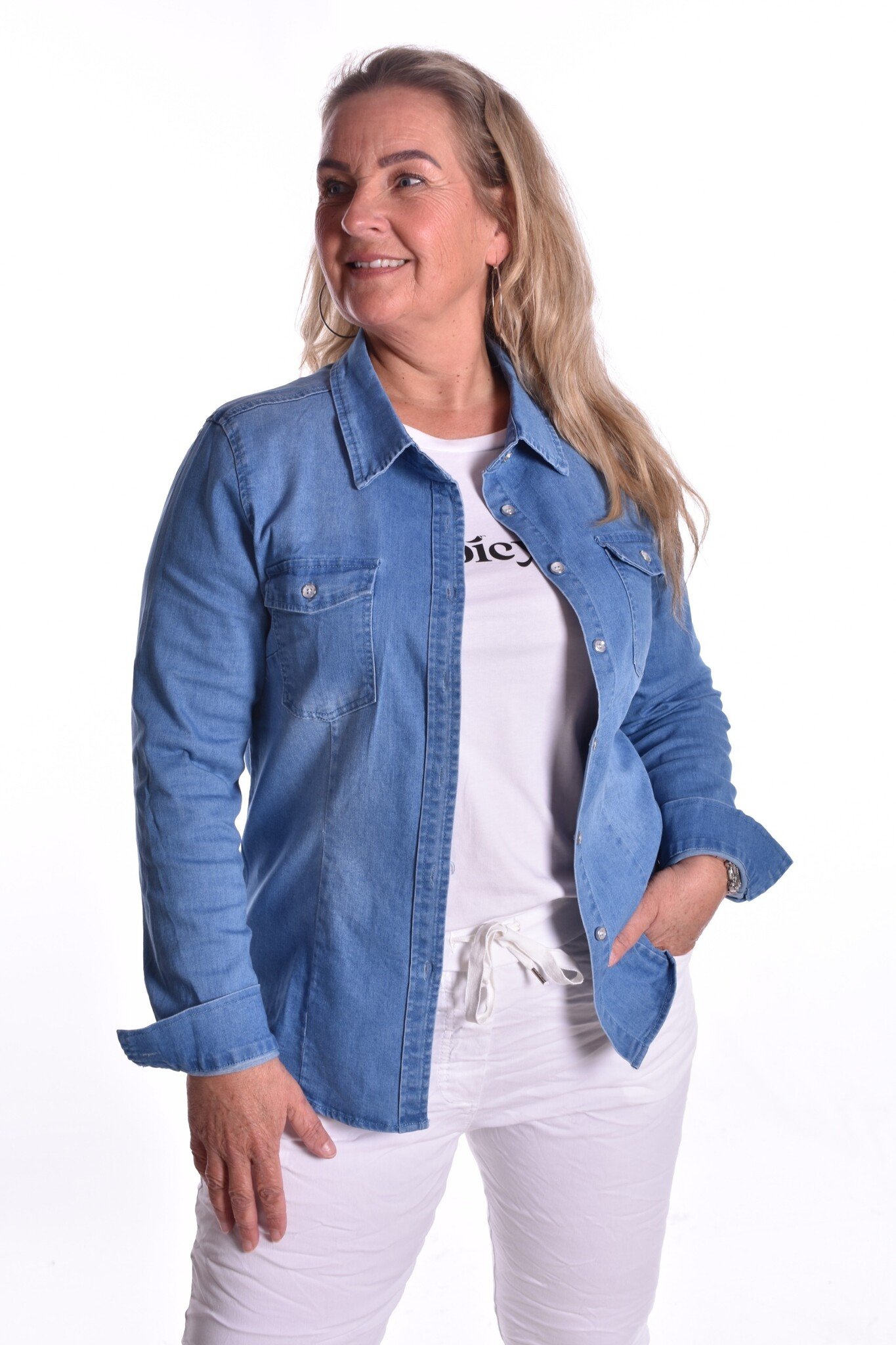 Spijker blouse met stretch.