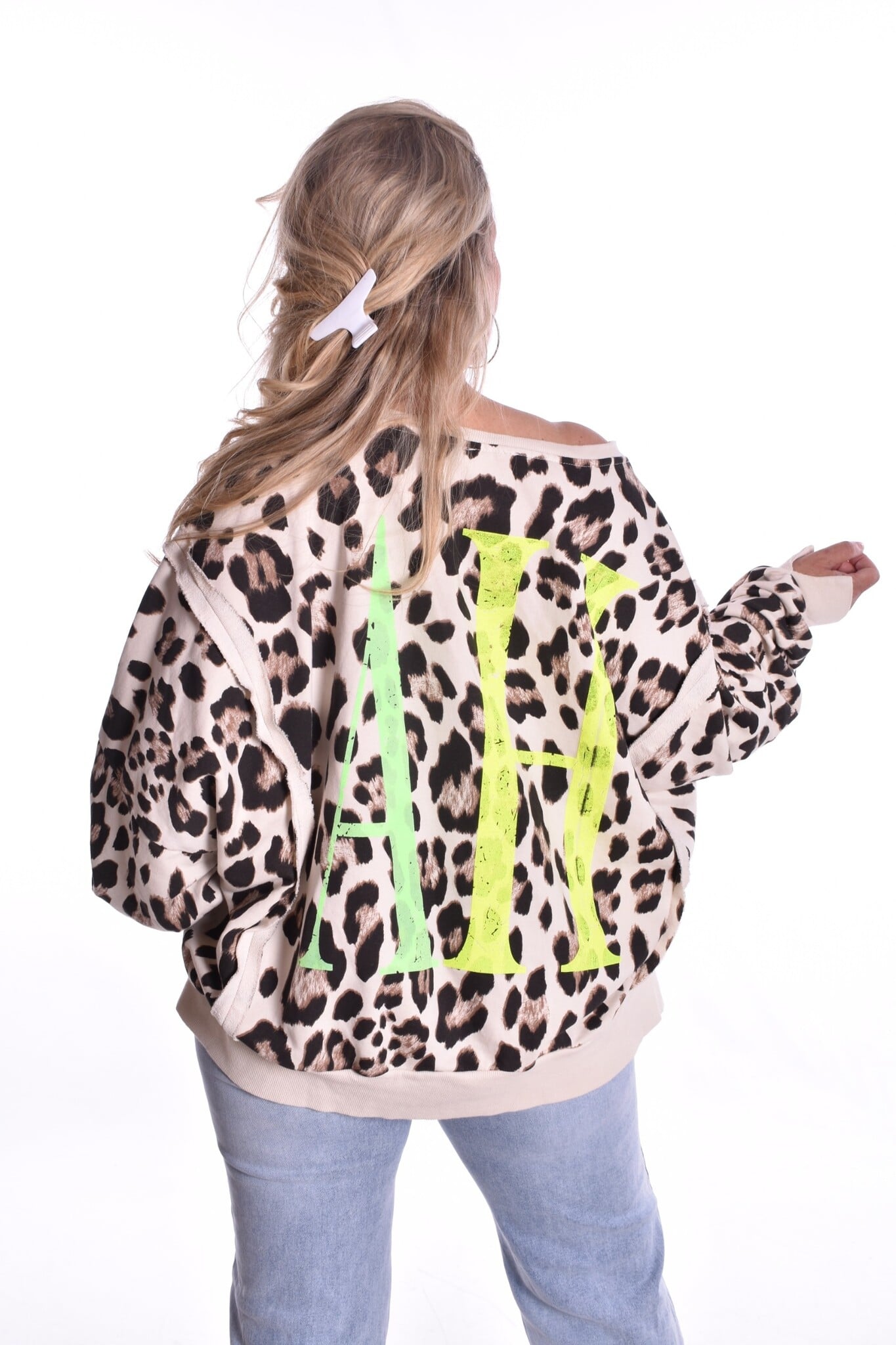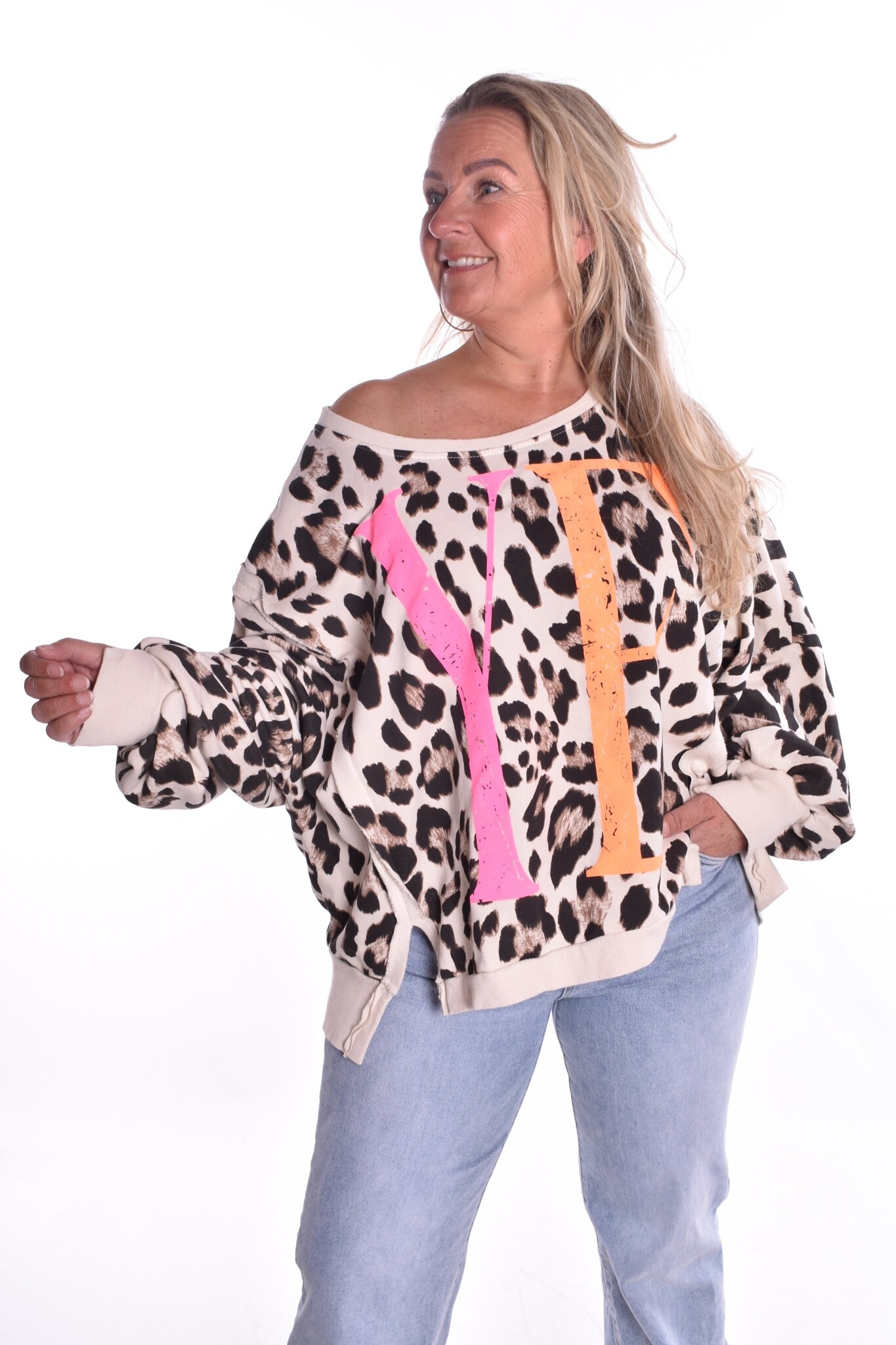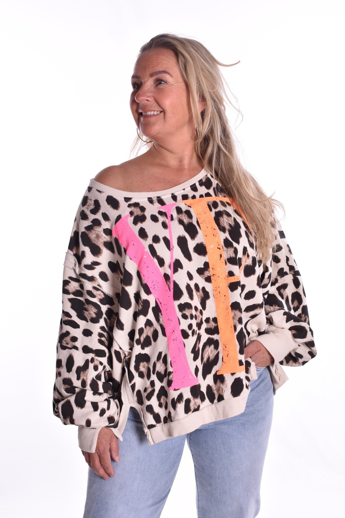 Mooie kwaliteit katoenen oversized sweater met 2 voor splitjes. de achterkant is iets langer.