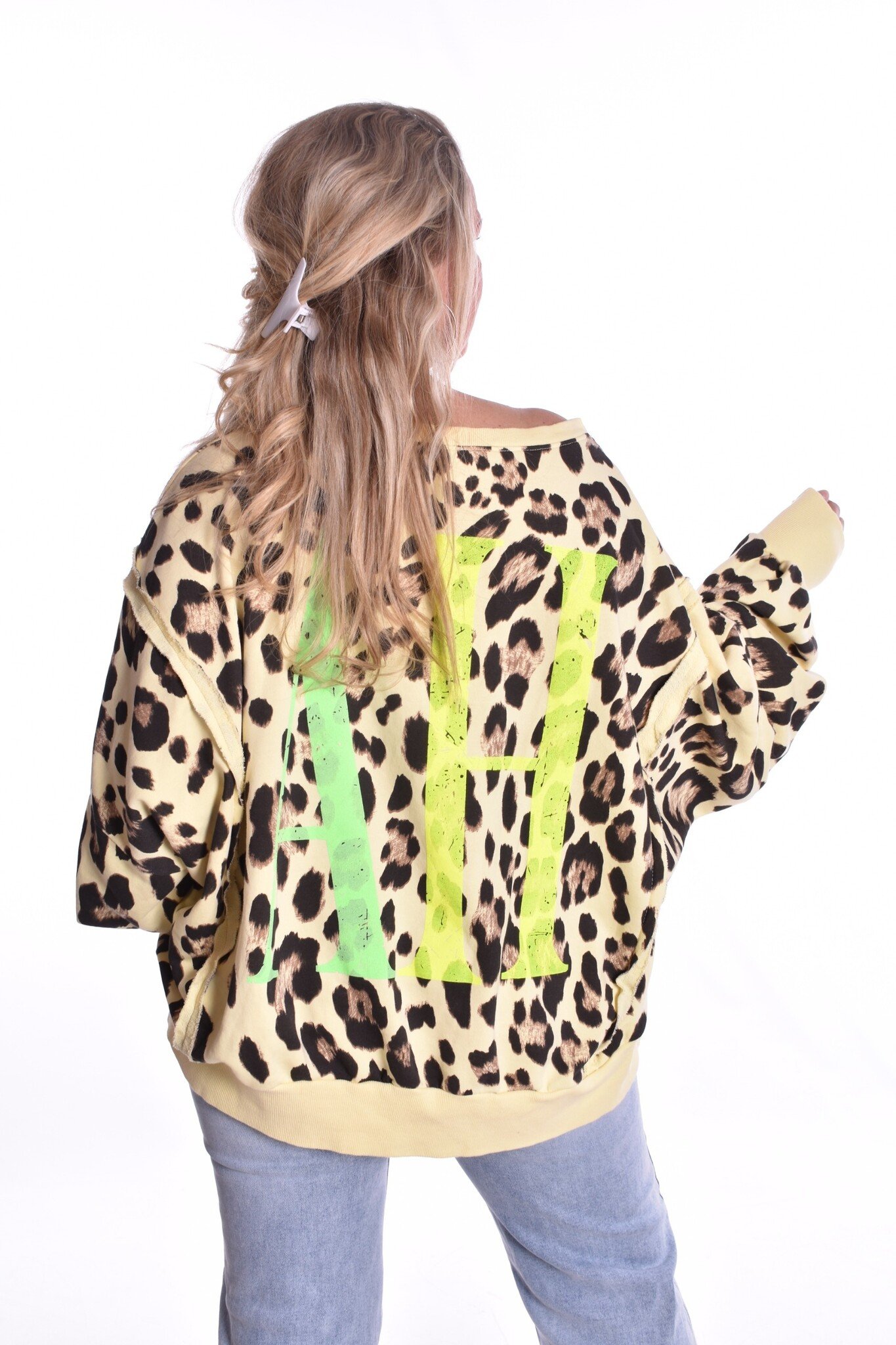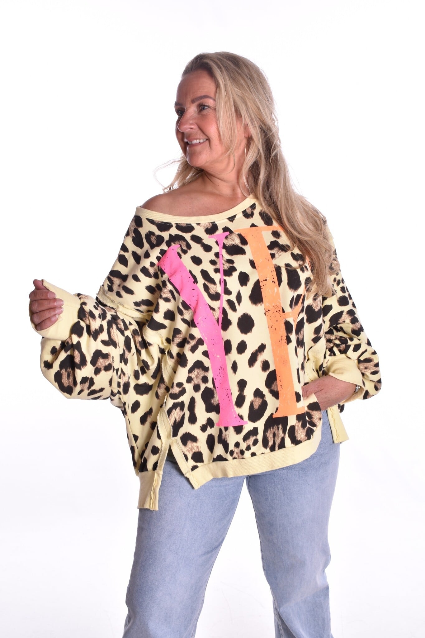 Mooie kwaliteit katoenen oversized sweater met 2 voor splitjes. de achterkant is iets langer.
