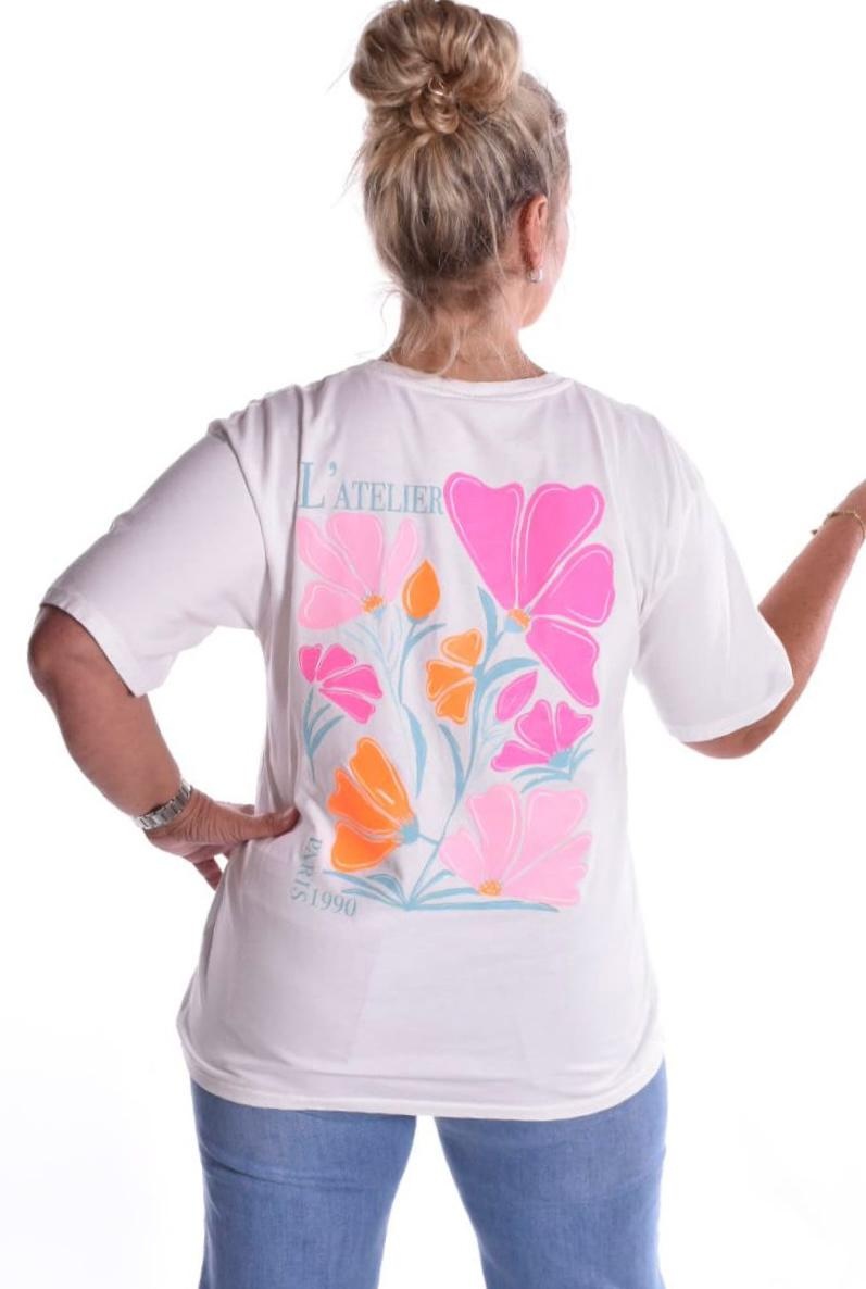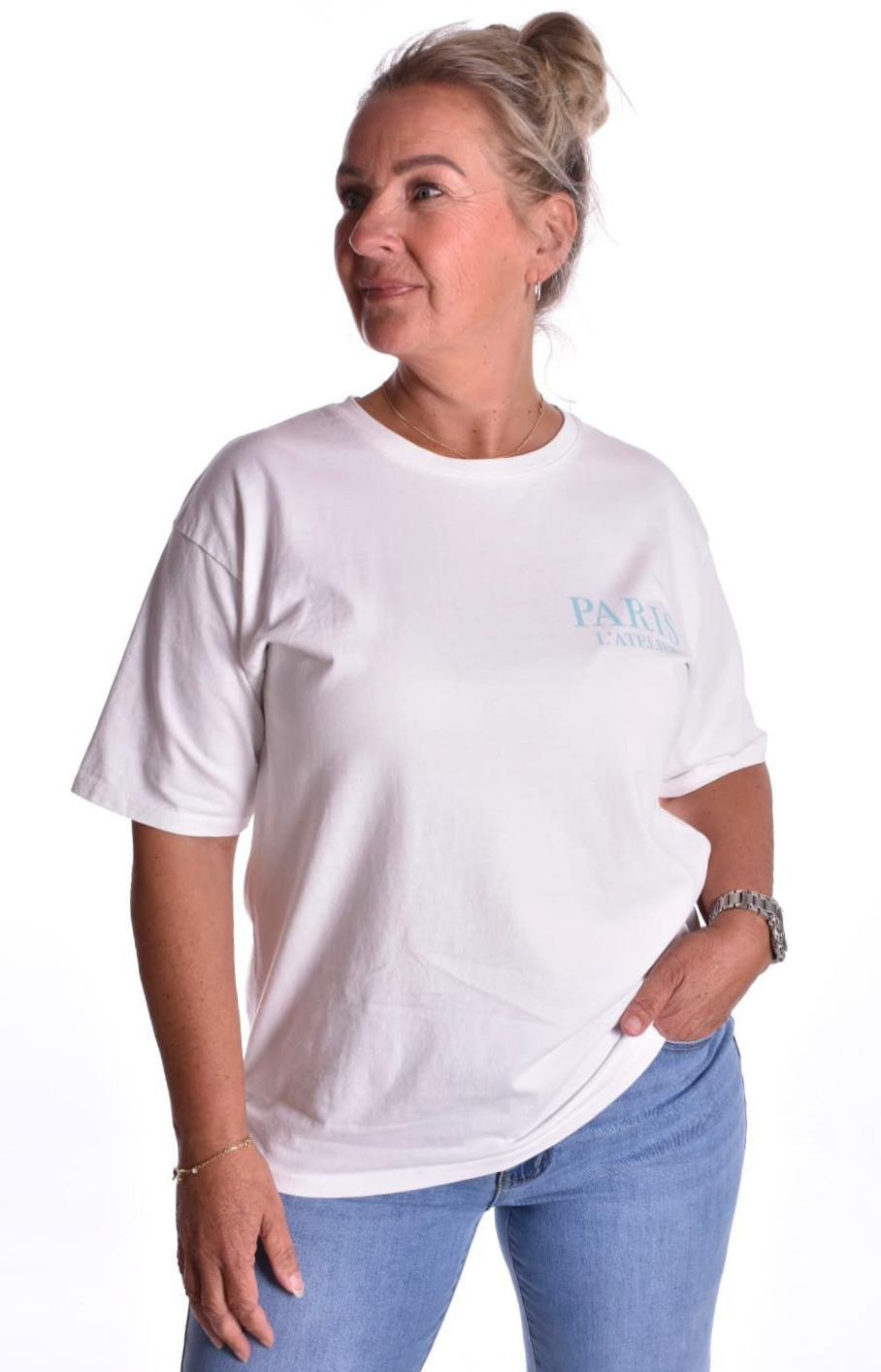 T-shirt van het merk Mooij. Het t-shirt is van een mooie kwaliteit katoen en heeft een leuke opdruk op de achterkant. Het T-shirt is er in één maat en wij adviseren dat het te dragen is t/m maat 42. Ons model heeft maat 40 en is 165 cm lang.