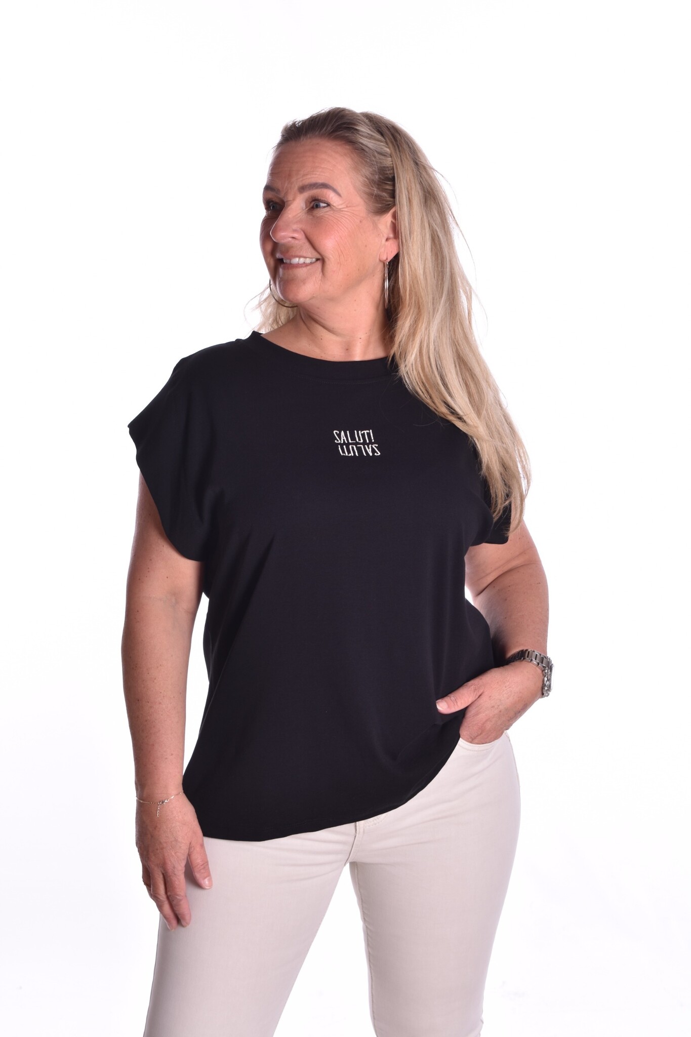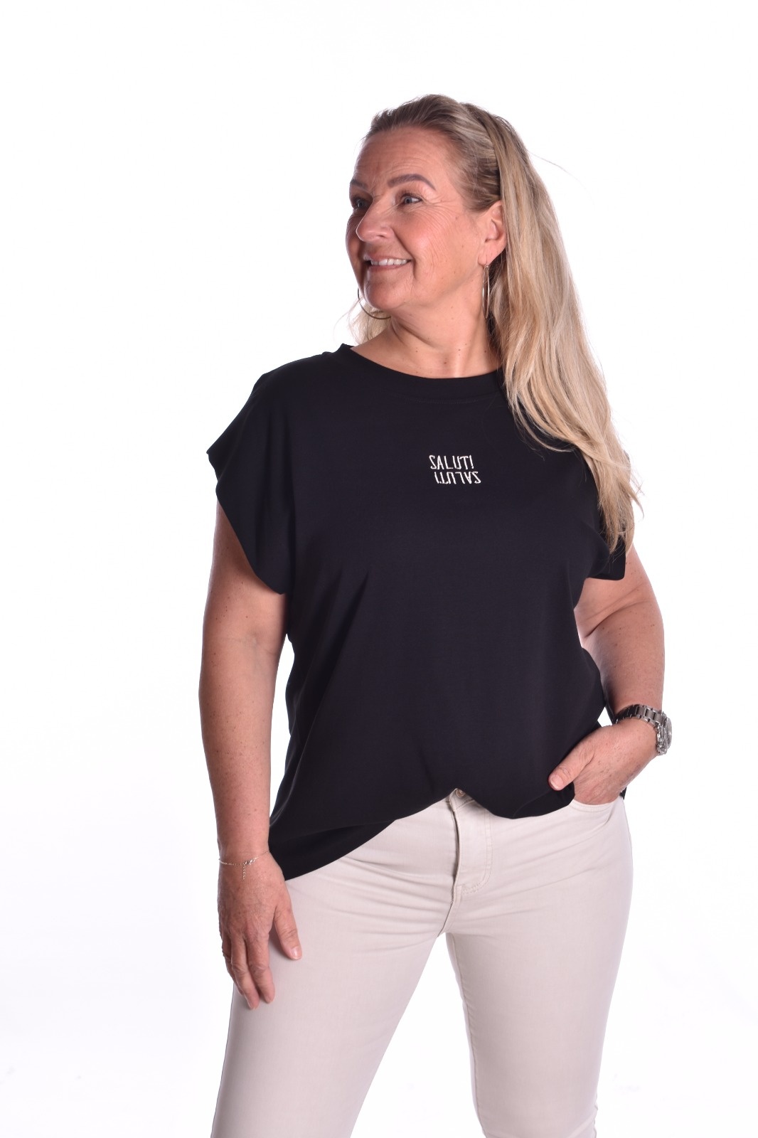 T-shirt Saluti van Mooij - Zwart