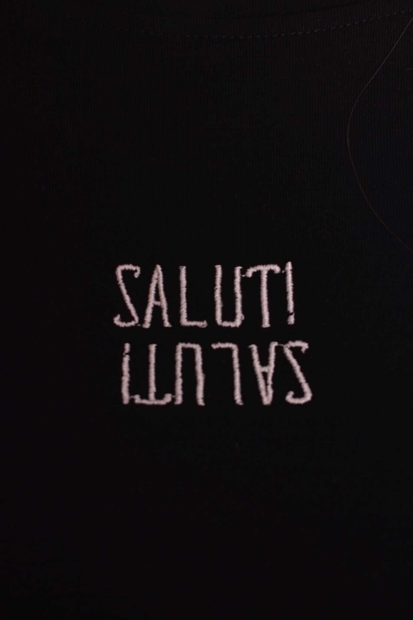 Met een subtiel borduursel Saluti.