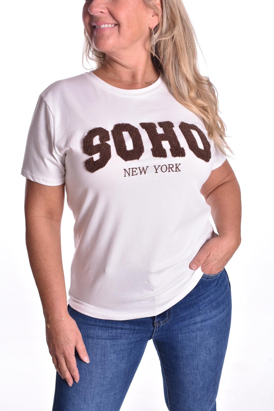T-shirt SOHO is van een mooie kwaliteit katoen met grote bouclé tekst.
