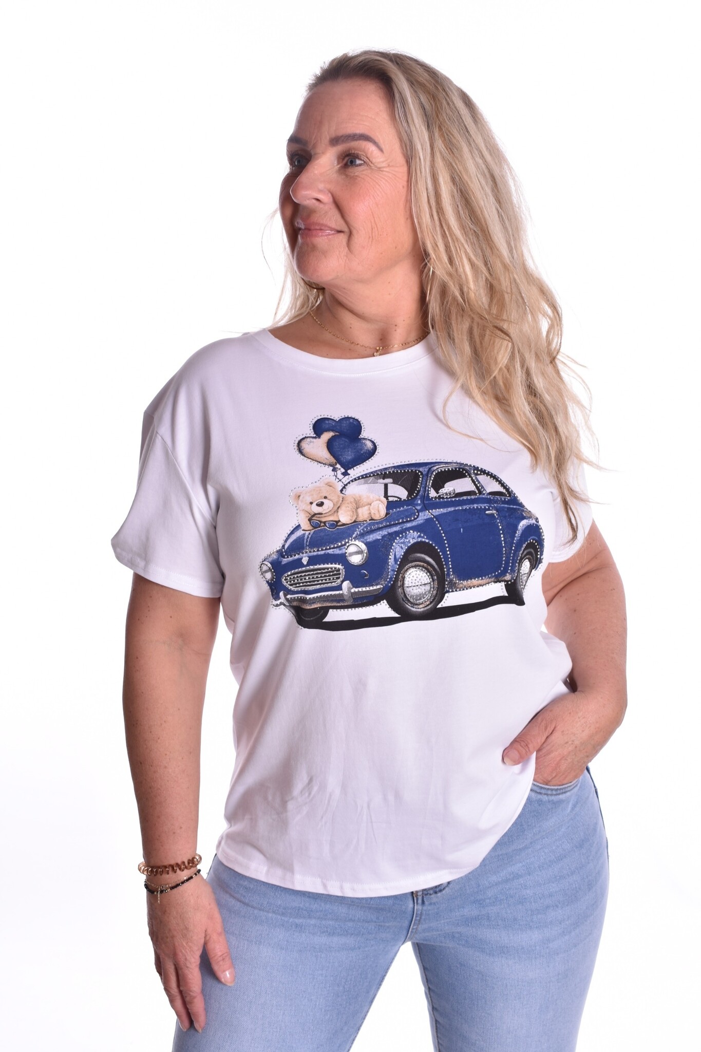 Het T-shirt is er in één maat en wij adviseren dat het t-shirt te dragen is t/m maat 42.