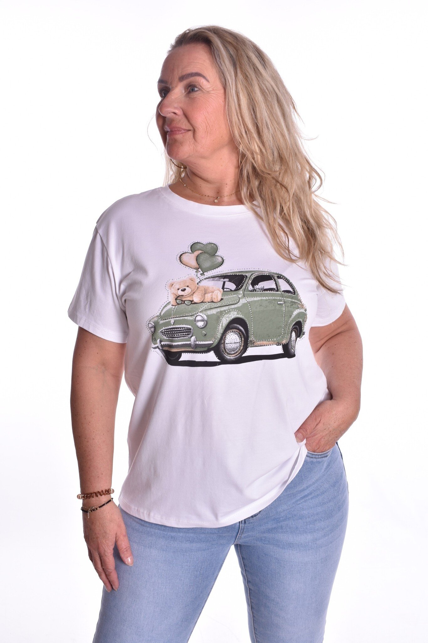 Het T-shirt is er in één maat en wij adviseren dat het t-shirt te dragen is t/m maat 42.